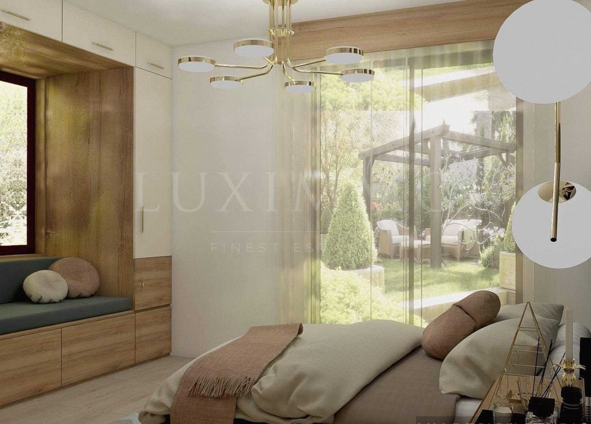 Имотът е с благоприятно югоизточно изложение, ситуиран удобно на 1-ви етаж и има директен излаз в градината.