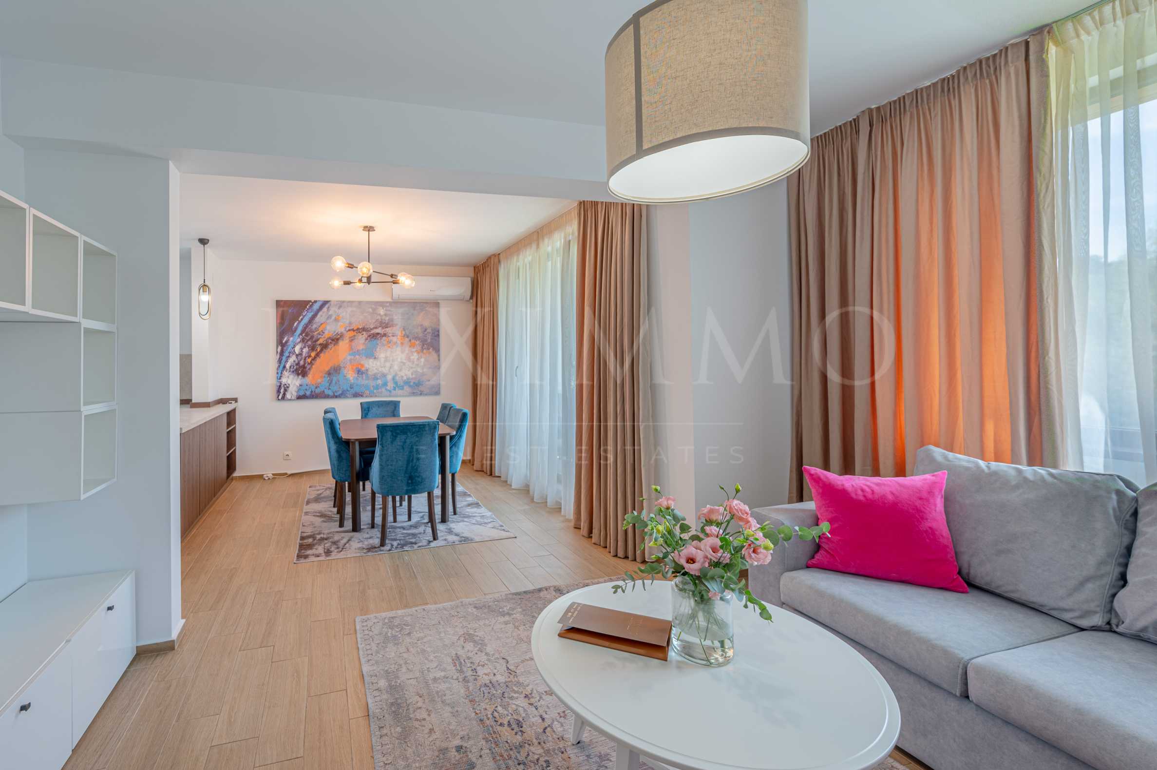 Жилището е просторно, светло и уютно, обзаведено по индивидуален дизайнерски проект с внимание към всеки детайл.