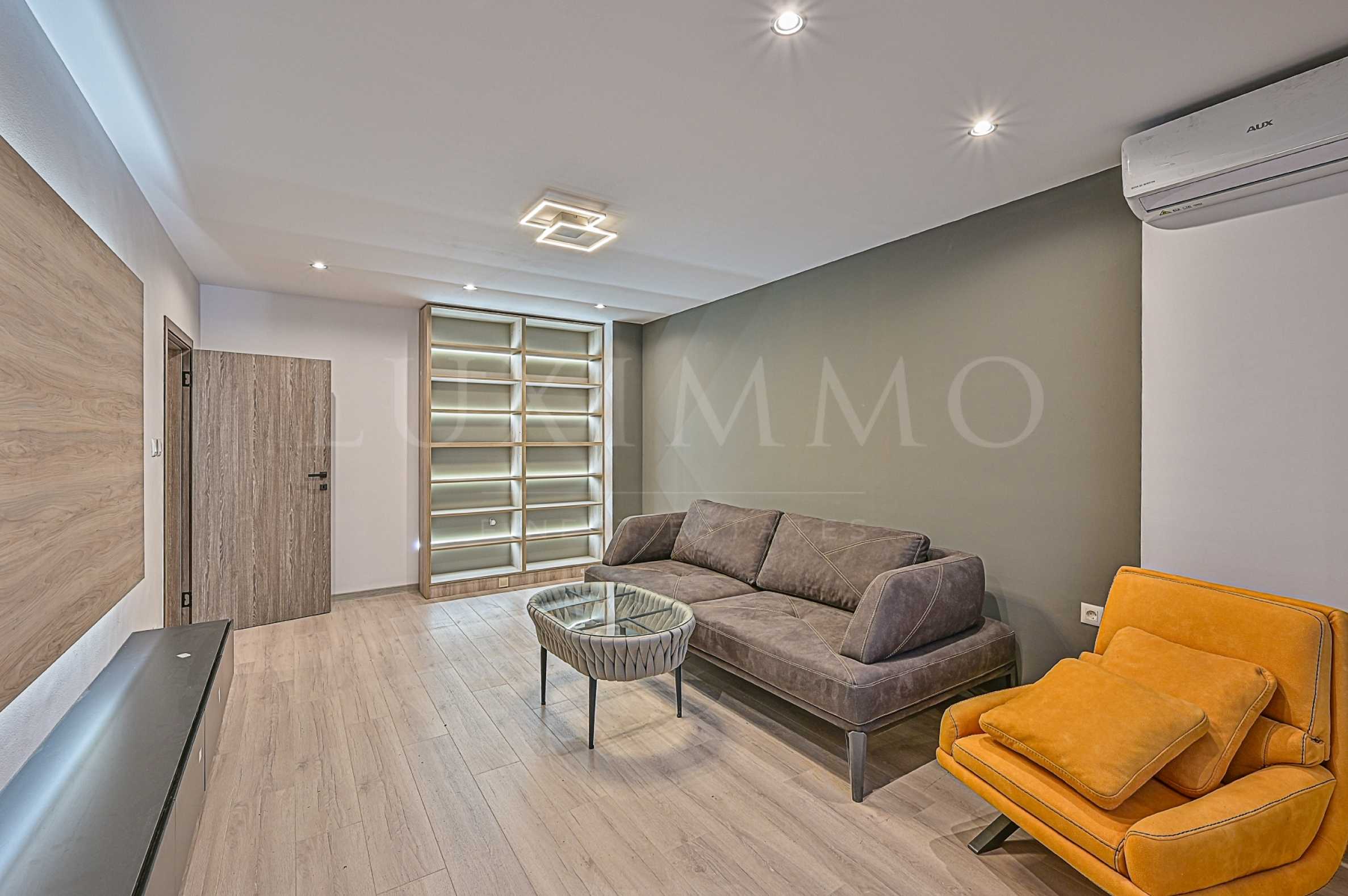 Състои се от входно антре, всекидневна, кухня с трапезария, просторна спалня, остъклена тераса, баня с тоалетна и напълно оборудвана гардеробна. Сградата е с контролиран достъп, предлага добре поддържани общи части и два асансьора.