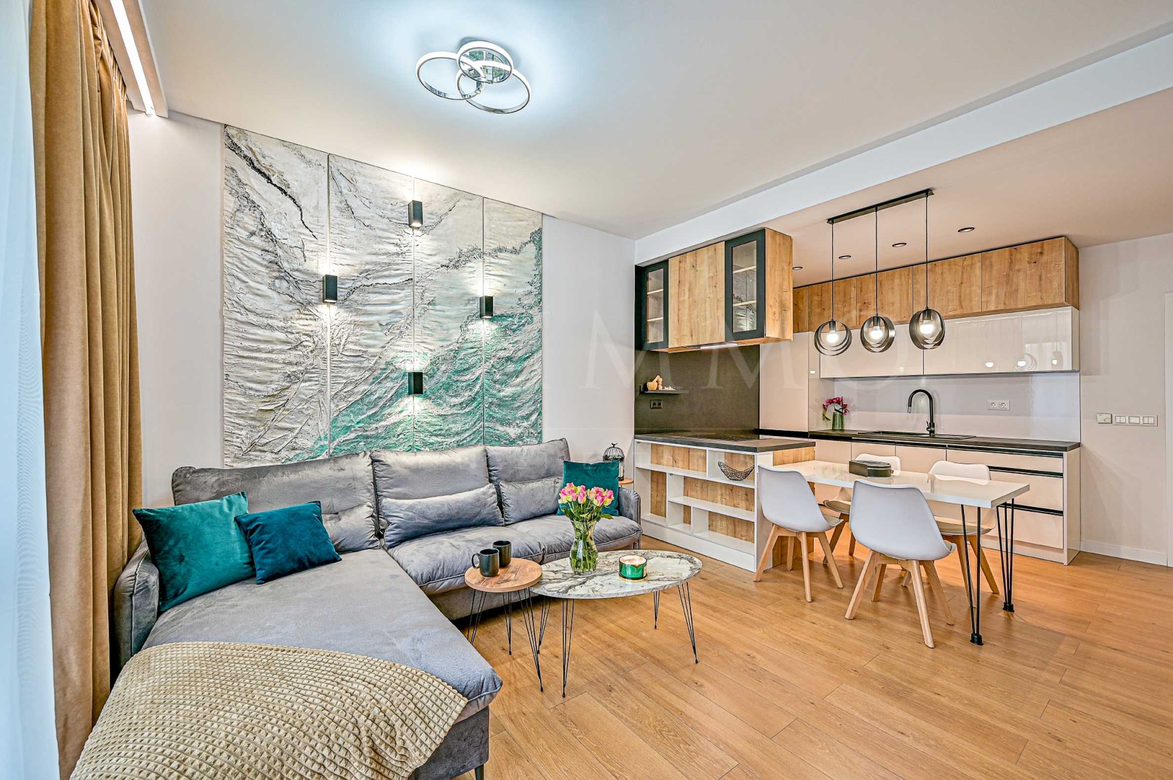 Представяме ви светъл, слънчев и уютен двустаен апартамент, обзаведен по индивидуален дизайнерски проект с внимание към всеки детайл. Жилището е просторно и предлага пълен комфорт на бъдещите си наематели.