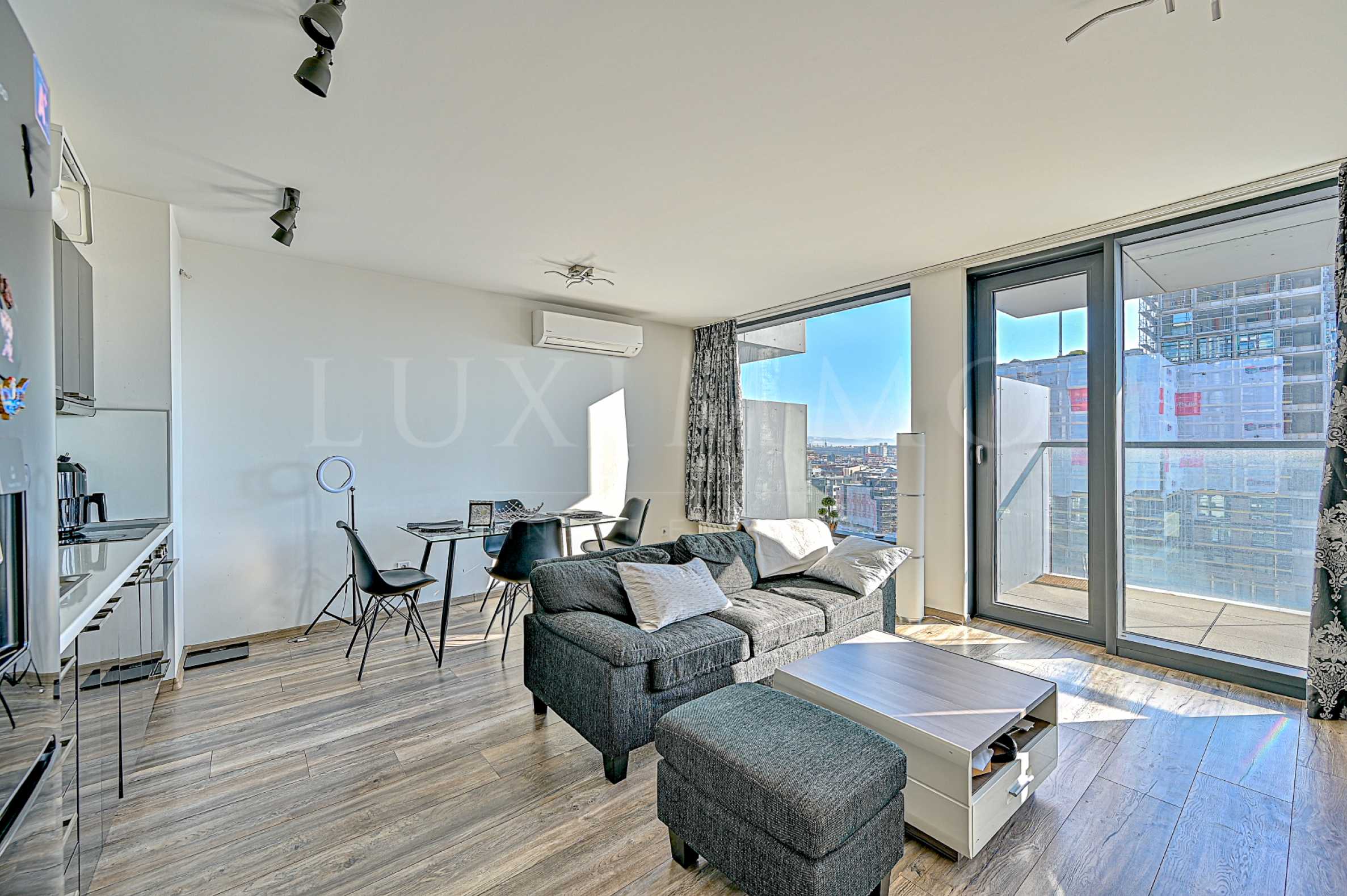 Просторен, светъл, двустаен, напълно обзаведен апартамент, на 8 жилищен етаж, с югоизточно изложение и величествена гледка към планината под наем в емблематичната сграда А3 в кв. Манастирски ливади.