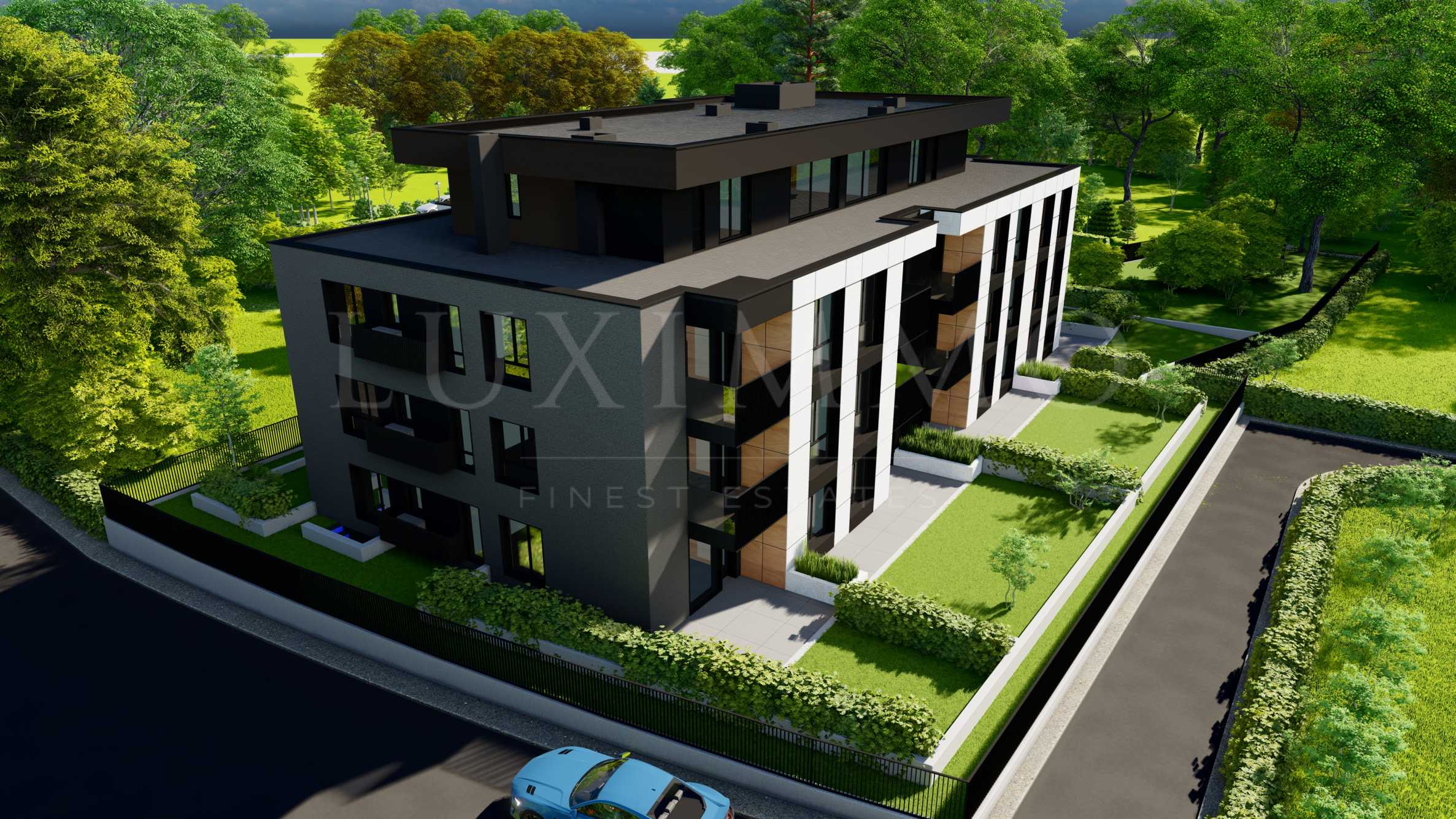 Архитектурната визия е модерна, с фасадно оформление, комбинация от полимерна мазилка и естествен камък. Общите части ще бъдат луксозно изпълнени и оборудвани с гранит, дървена ламперия и луксозен хидравличен асансьор. Предвидени са богато озеленени площи, паркова среда с детски кът, както и фасадно LED осветление и декоративно градинско осветление, което да очертае парцела и зелените площи.