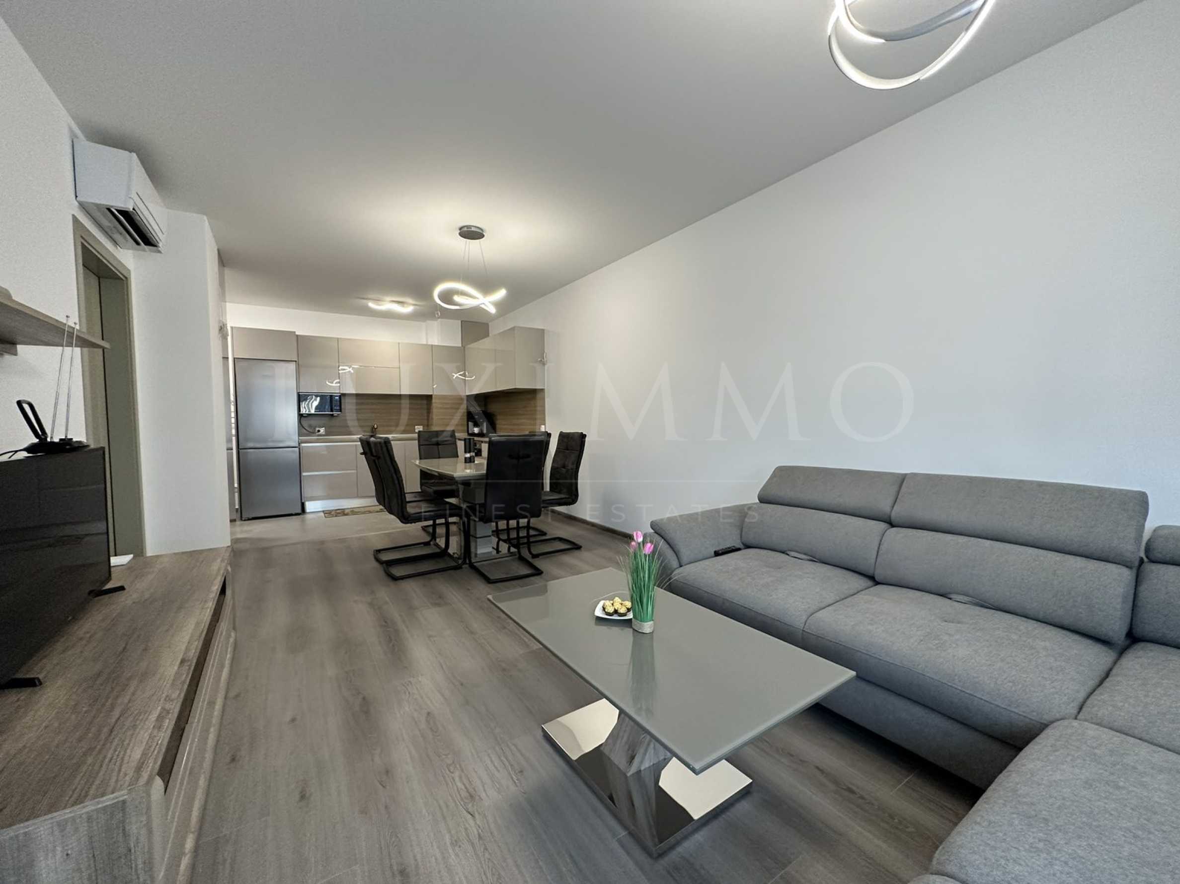Жилището е завършено с качествени довършителни работи, модерни мебели и оборудвана кухня с вградени уреди, пералня Bosch и хладилник Liebherr. Отоплението е на ТЕЦ, има и монтирани климатици Mitsubishi във всяка стая.