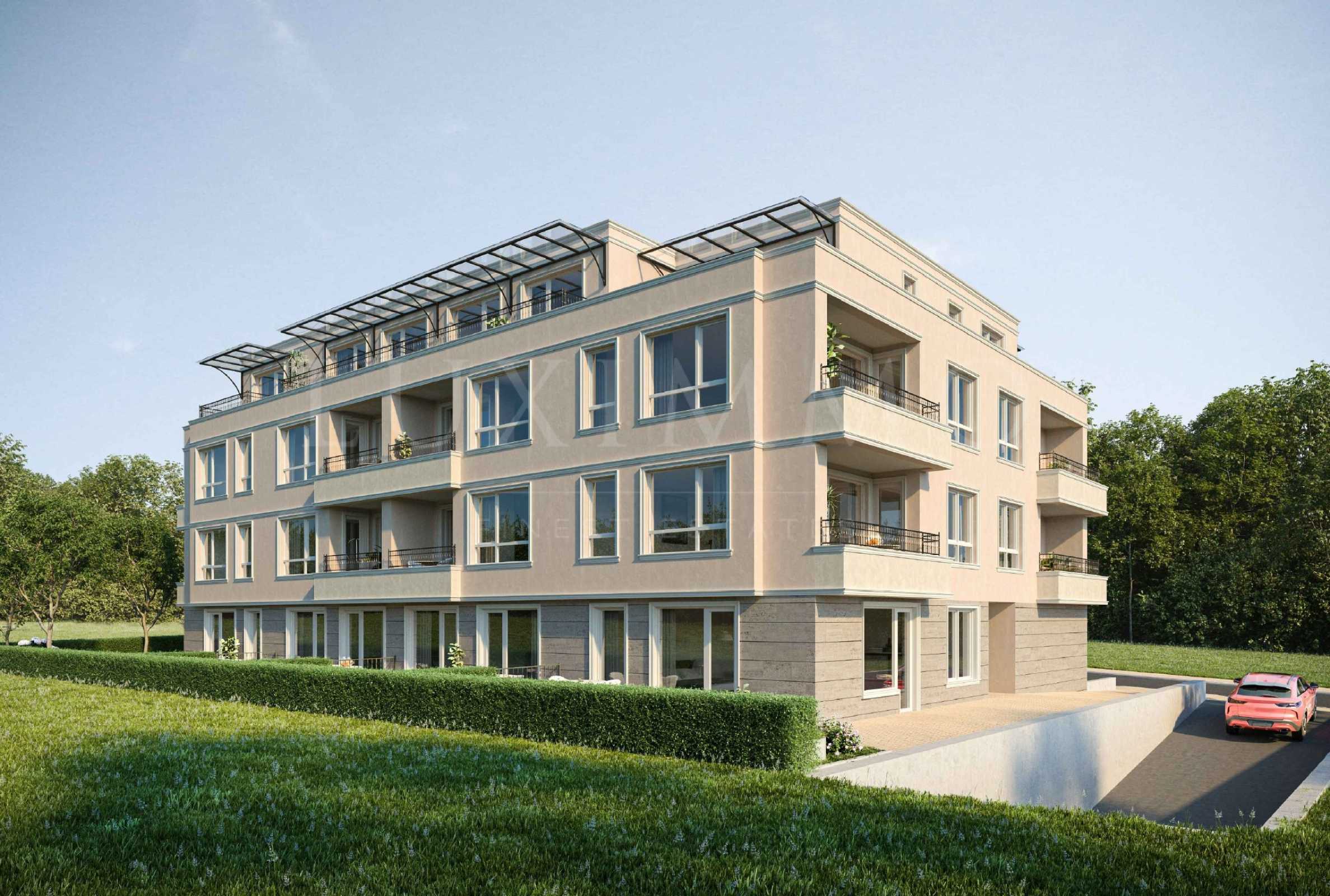Сградата е решена с един вход, проектирана с ниво сутерен, ниво партер и три жилищни етажа. Разполага с общо 23 апартамента, от които два са тристайни, а останалите са от тип двустайни, като на ниво партер са разположени 4, а 19 са разпределени на следващите три нива. Осигурени са общо 30 места за паркиране - 6 гаража на партер, 2 паркоместа на терен и 22 паркоместа/гаражи на сутеренно ниво.