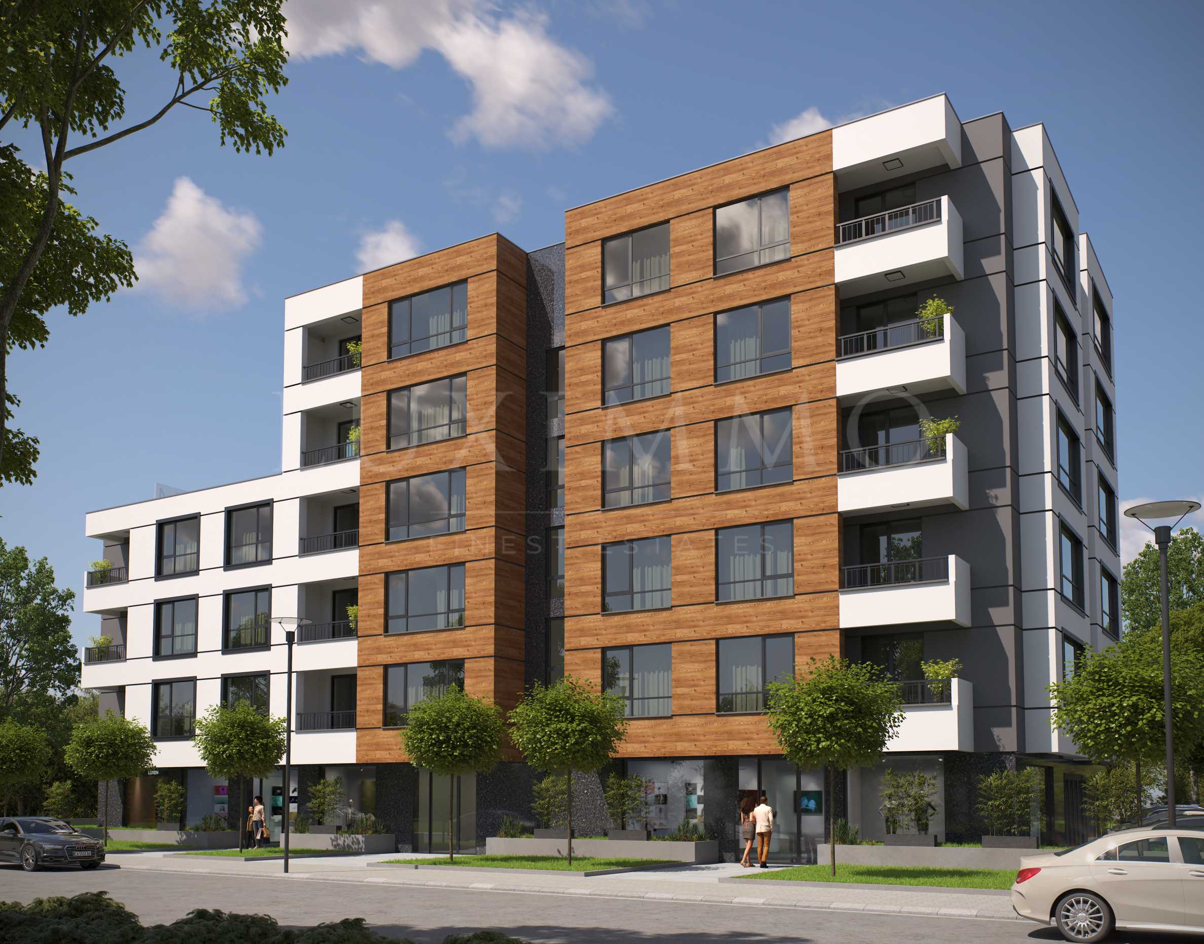Представяме двустаен апартамент в новострояща се жилищна сграда до Бизнес Парк София, метростанция „Бизнес парк“ и южната дъга на Околовръстното шосе, в близост до природен парк „Витоша“. Районът е с развита инфраструктура, с няколко автобусни линии на градския транспорт на пешеходни разстояния. Локацията е изключително удобна не само до спирки на градски транспорт, но и до паркове - на 100 м ще е от бъдещ нов парк - Източен парк, точно зад Lidl, до търговски обекти – Кауфланд, Бизнес център.