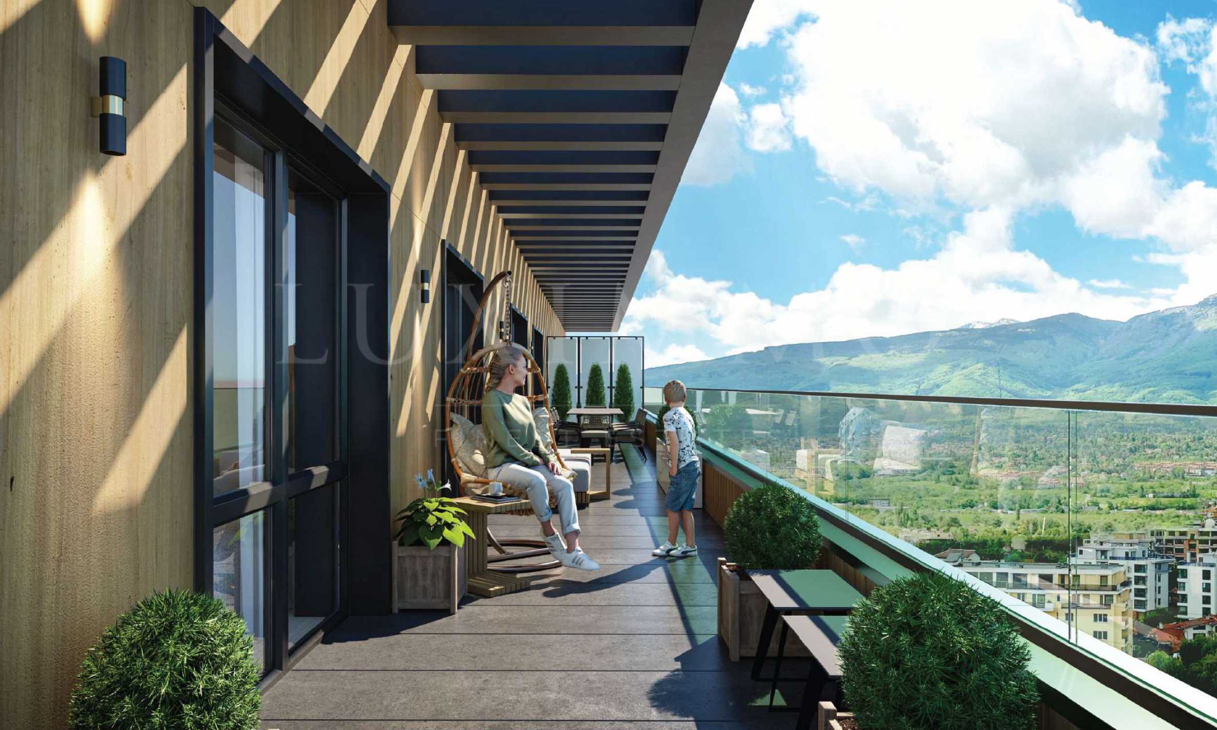 Имотите за продажба са от тип ателие, двустайни, тристайни, четиристайни жилища, както и пентхауси и мезонети. От жилищата се разкриват панорамни гледки към града, парка и Витоша.
