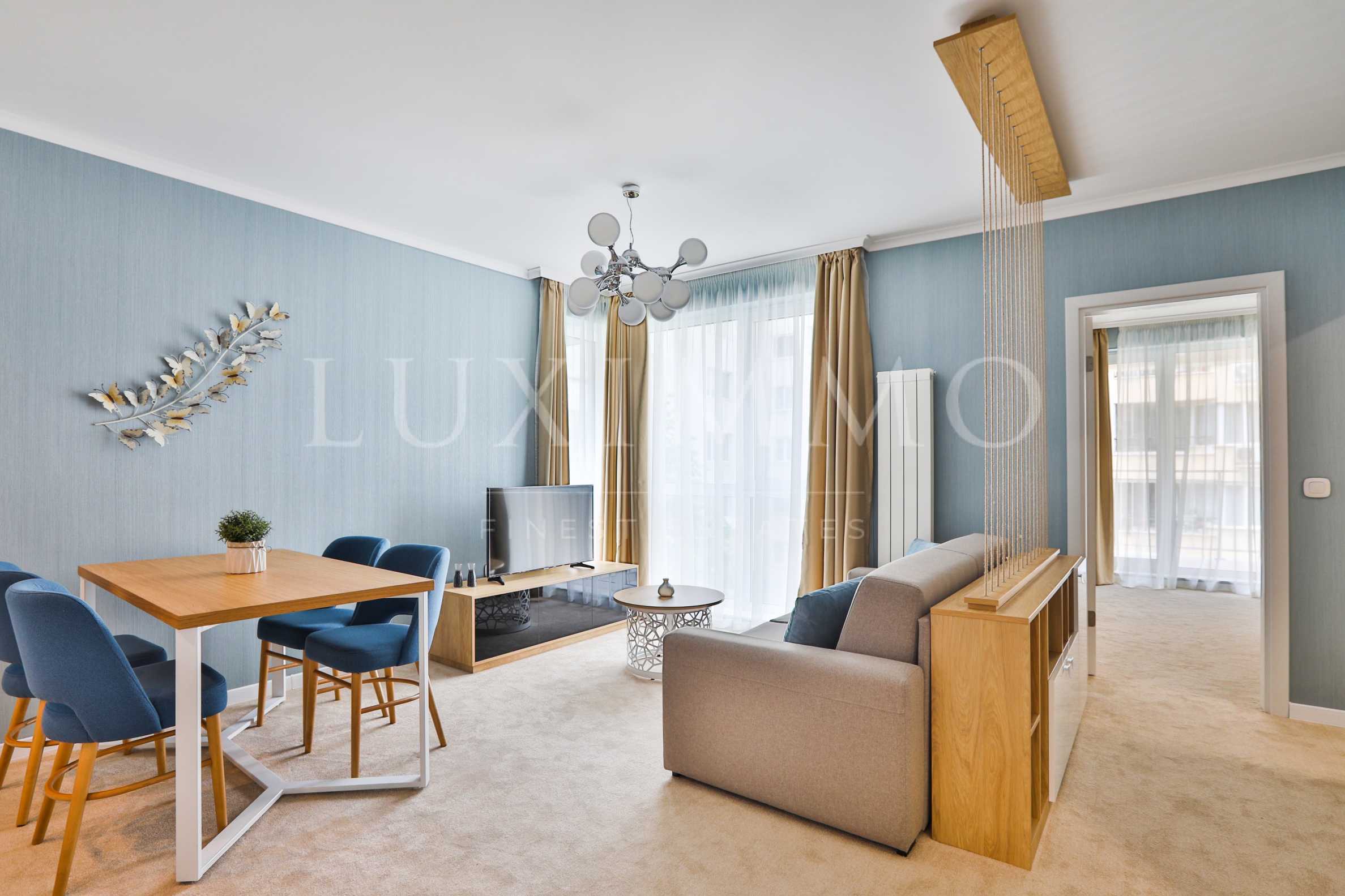 Предлагаме двустаен апартамент под наем в нова сграда с модерна визия и луксозни общи части в кв. "Лозенец" до Южен парк.