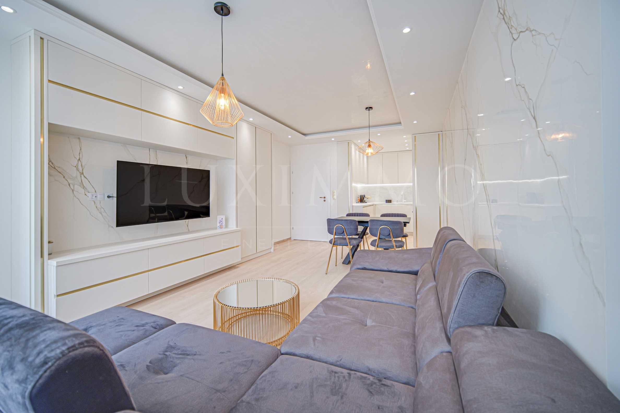 Мека мебел; холна маса; маса за хранене с четири стола; вградени шкафове; завеси; LED “Samsung”; вградена кухня; хладилник „ Beko”; съдомиялна “Gorenje”; фурна с котлони “Gorenje”; климатици “Gree”; вградени гардероби; легло с матрак; нощни шкафчета; LED “ Samsung”; пералня със сушилня “Bosch“; осветителни тела и др.