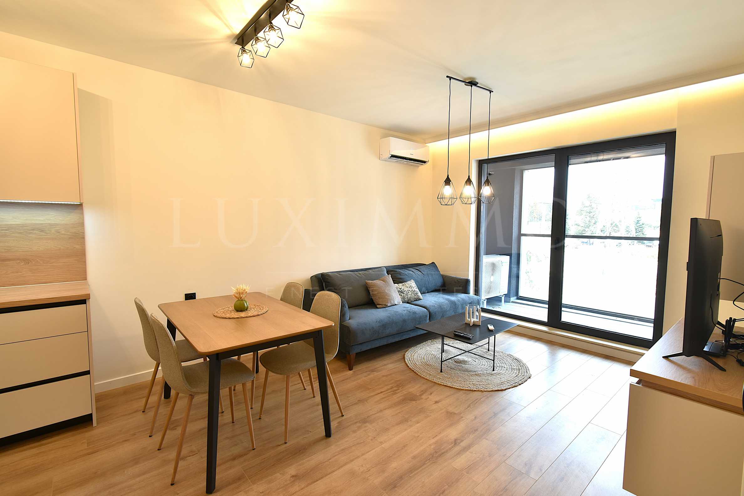 Представяме ви изключителен апартамент, обзаведен с вкус и внимание към детайла, който предлага несравнимо удобство и лукс. Жилището е обзаведено с мебели по поръчка, които съчетават стил и функционалност, а висококачествената мека мебел и спалнята са от водеща европейска марка, осигуряващи максимален комфорт и елегантност.