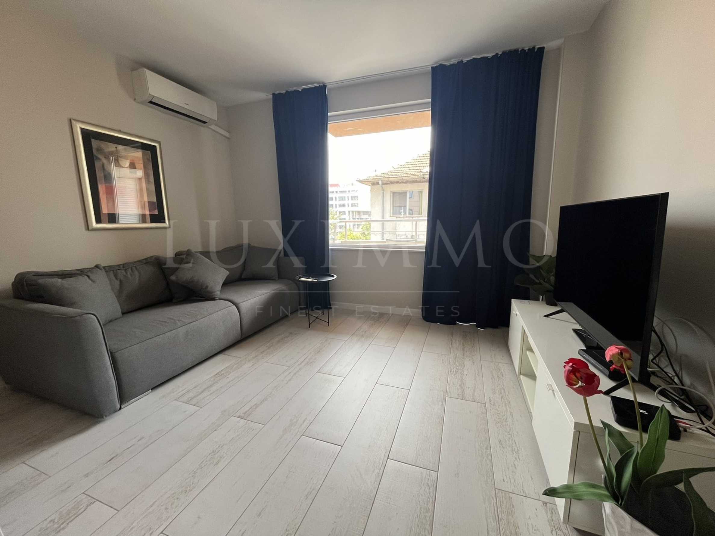 С просторни и светли помещения, напълно обзаведен и оборудван, този апартамент е готов за нанасяне и очаква своите наематели.