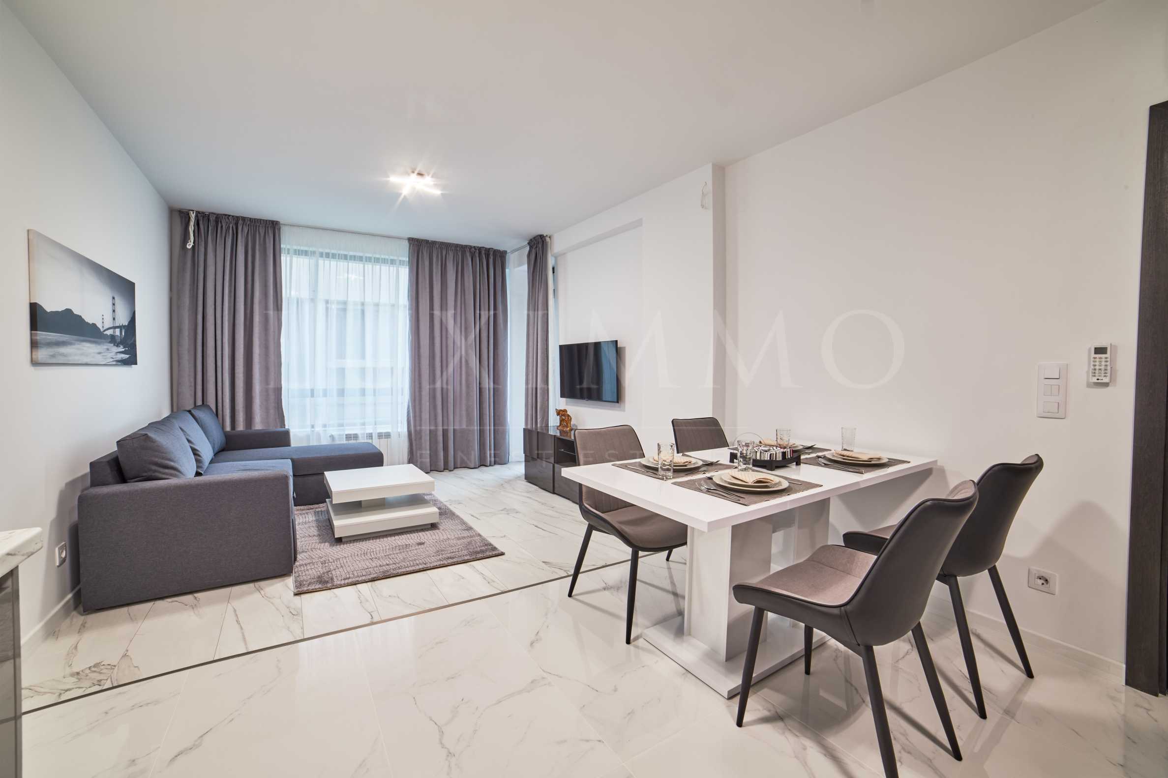 Имотът е завършен с атрактивен, светъл и модерен интериор, с висок клас електроуреди, подови настилки, интериорни врати и банята от първо качество.