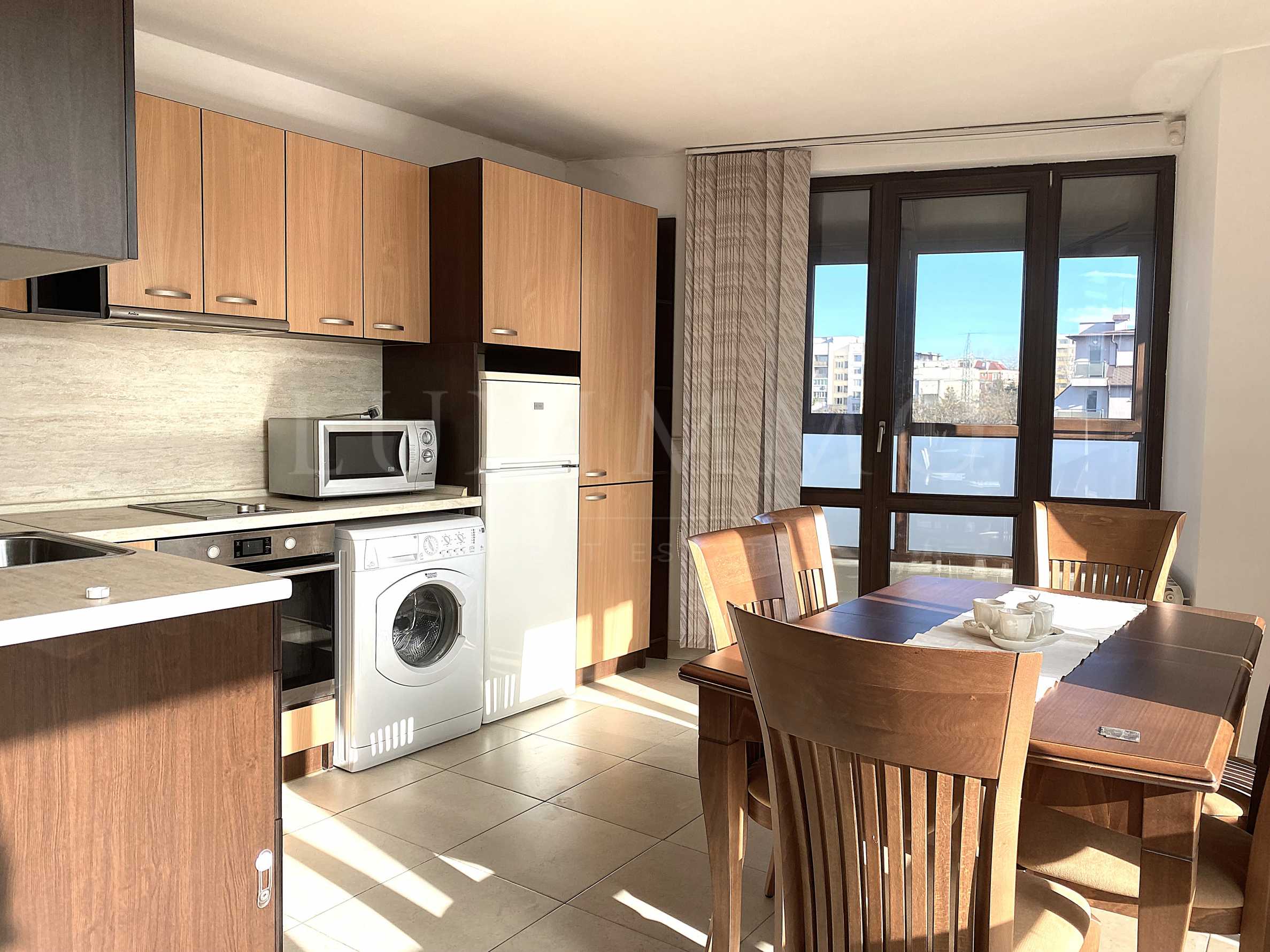 Отоплението е с индивидуален газов котел, който гарантира ефективност и икономичност. Във всекидневната е монтиран климатик за охлаждане и отопление, което осигурява комфорт през цялата година. За максималното удобство на своите нови стопани, жилището се предлага напълно обзаведено и оборудвано с всичко необходимо за едно домакинство. Сградата е с контрол достъпа.