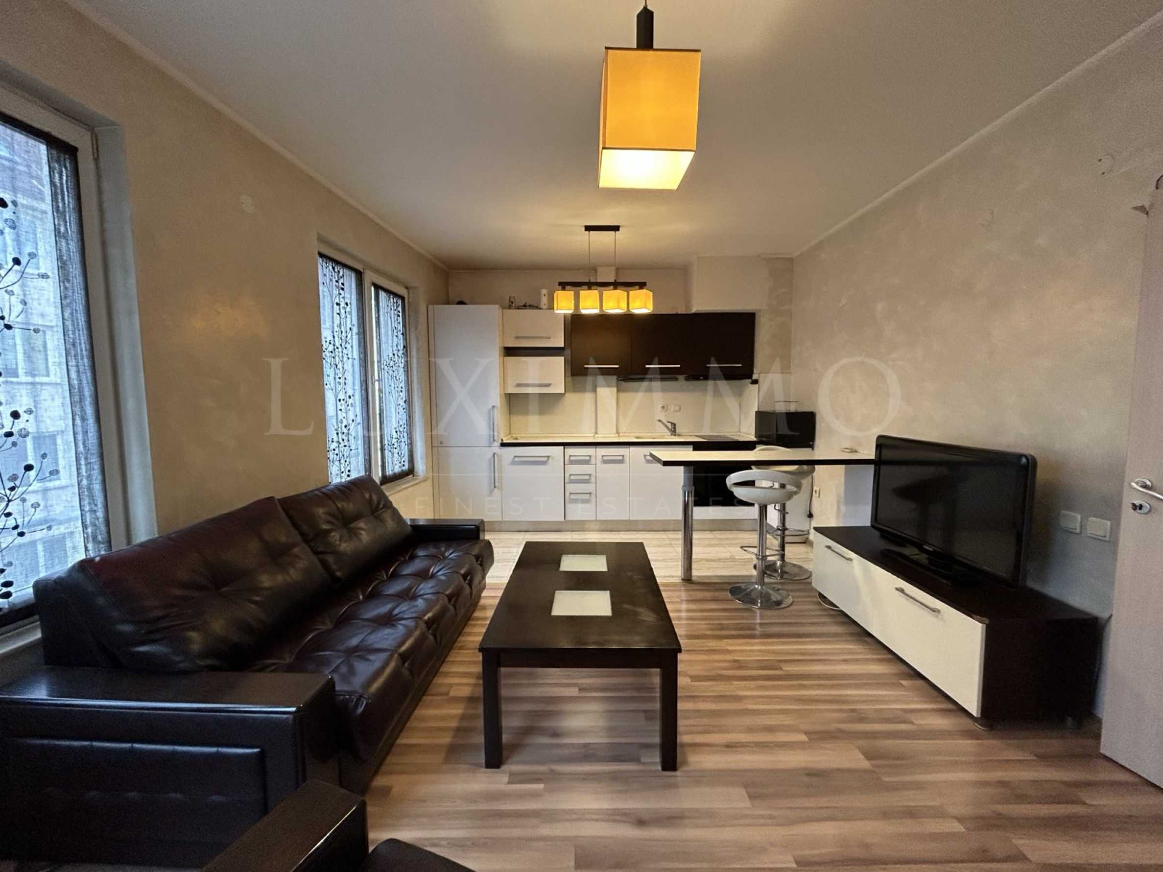 Предлагаме модерно обзаведен двустаен апартамент под наем, разположен в добре поддържана жилищна сграда, в кв. "Манастирски Ливади - Изток", между Bulgaria Mall и мол Paradise Center. Районът е спокоен, с всички необходими удобства наблизо, включително спирки на градски транспорт, супермаркет Lidl, хранителни магазини и др.