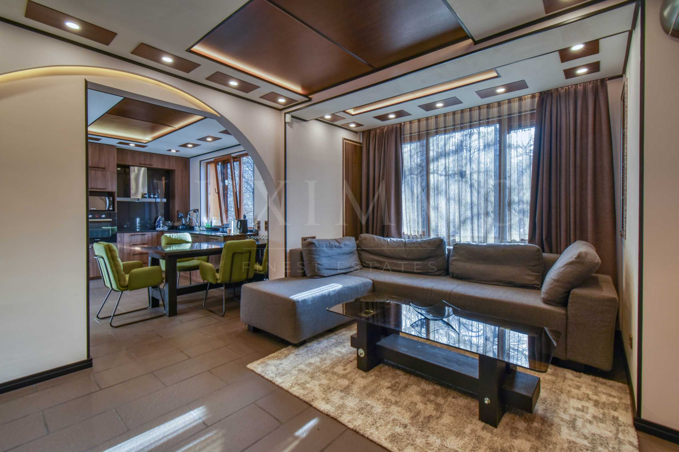 Апартаментът е с южно изложение и предоставя спокойствие както и гледка към зеленината на квартала. С обща площ от 70 кв.м., жилището съчетава лукс и функционалност, идеално за хора с изискан вкус.