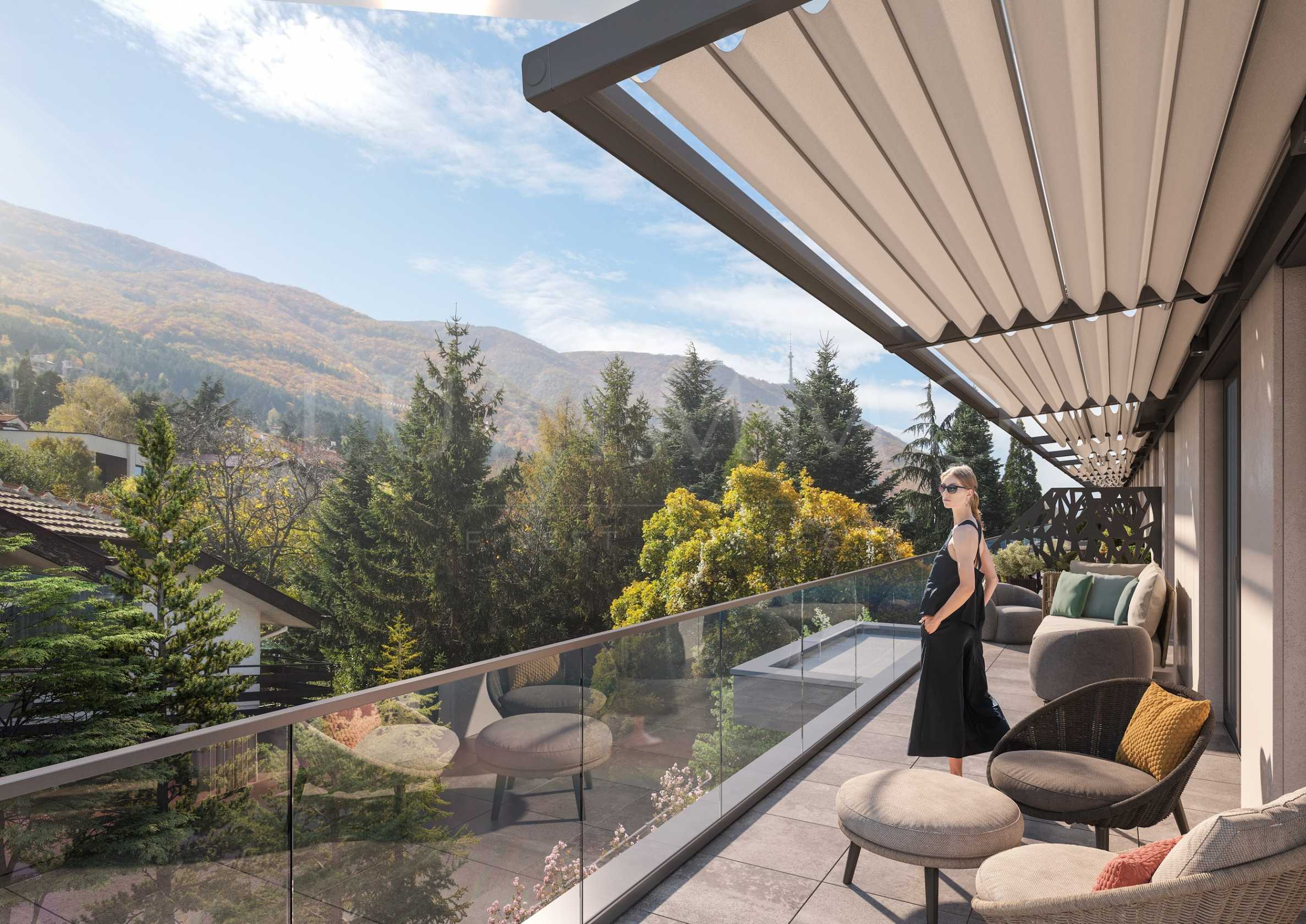Предлагат се различни типове апартаменти с една, две или три спални, от които можете да се наслаждавате на живописна гледка към Витоша планина или към града.