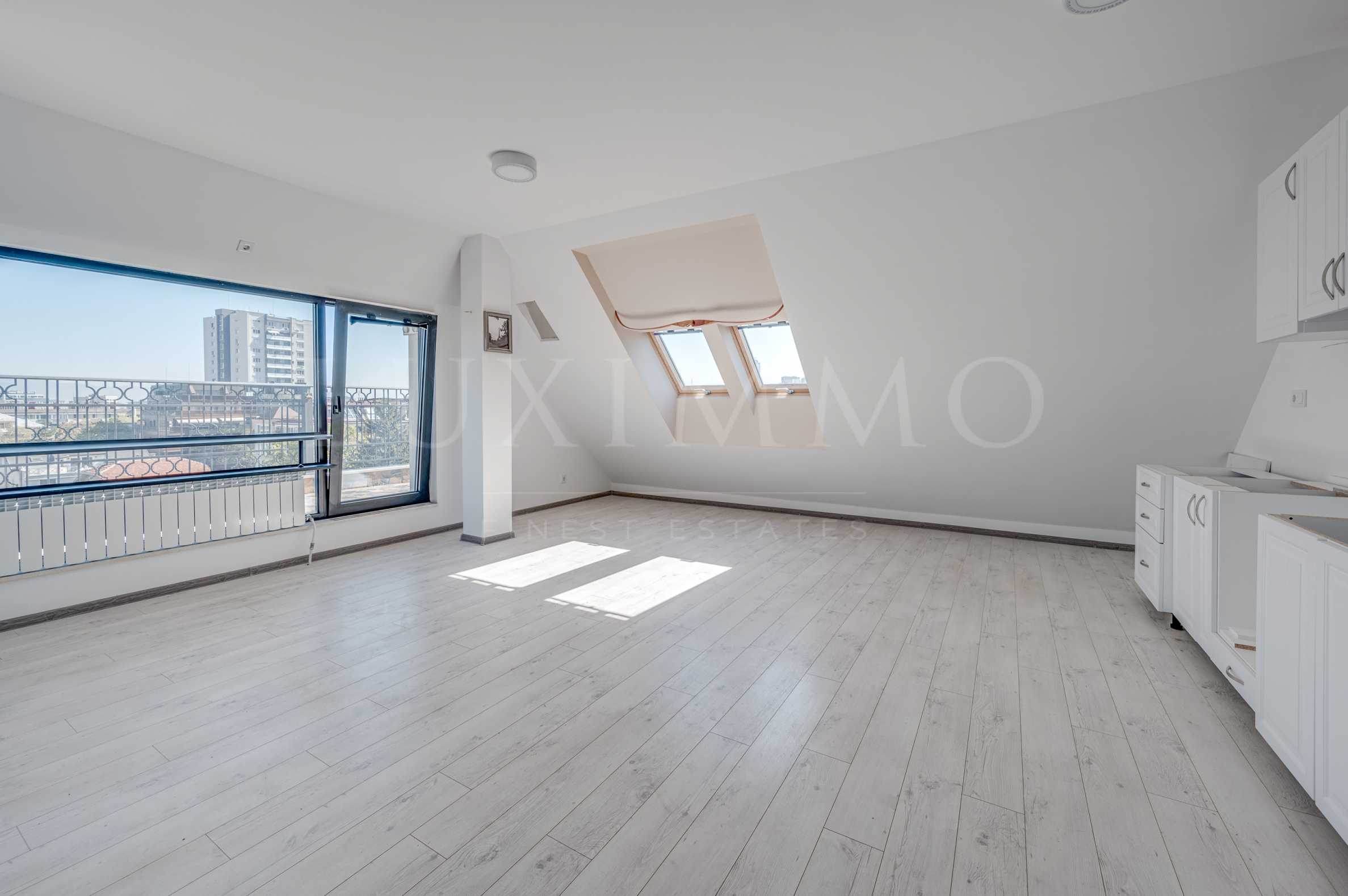 Представяме Ви изключителен имот – двустаен апартамент на последен етаж в престижния кв. Изток. Жилището разполага с две просторни тераси с уникални гледки – към града и към планина Витоша.