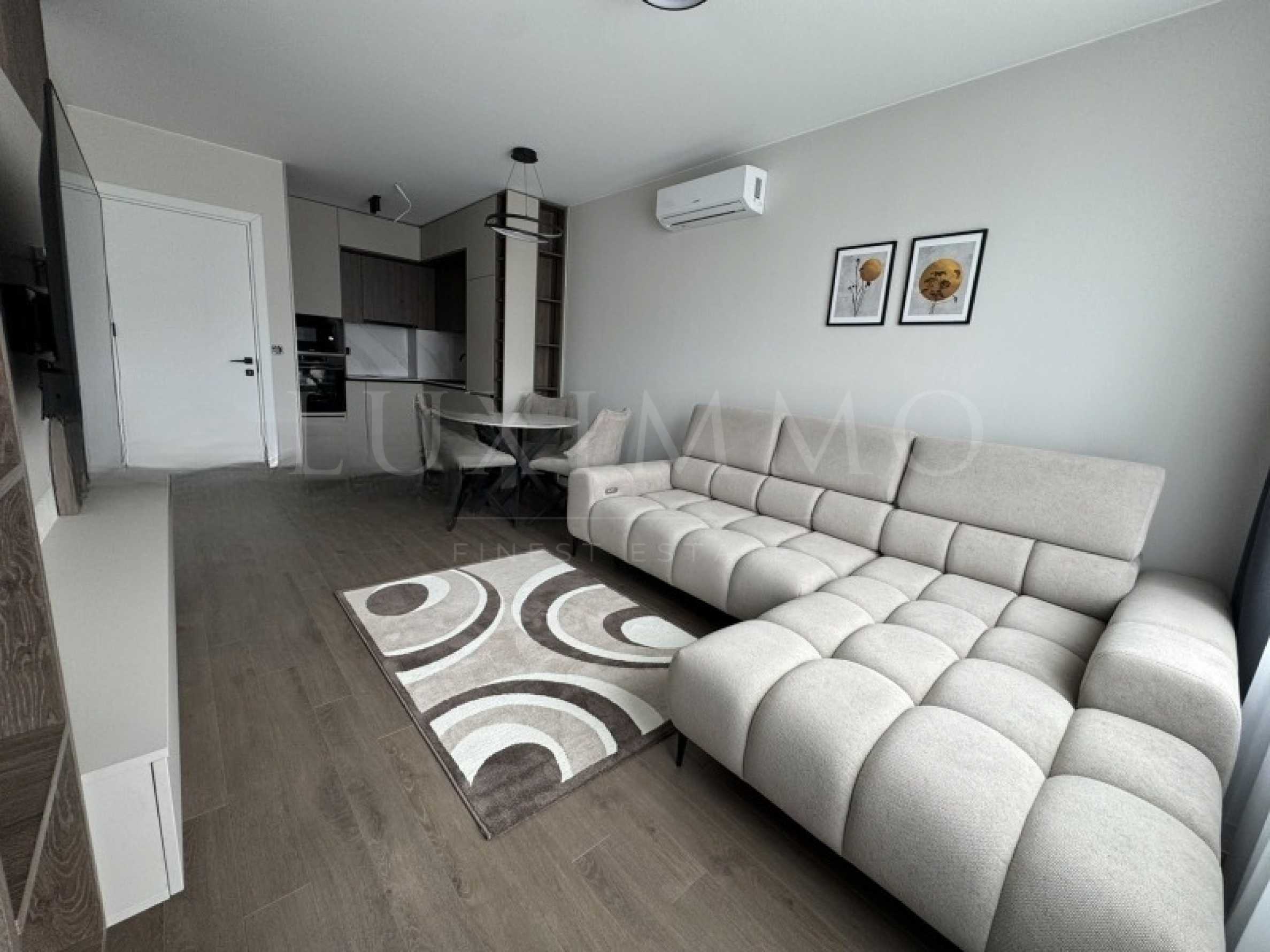Представяме модерно мебелиран, функционален двустаен апартамент с площ от 63 кв.м, разположен на 5-и етаж от 7 в нова сграда с предстоящо въвеждане в експлоатация до края на 2025 г. Сградата е част от нов комплекс от три сгради, изпълнена от доказан строител с множество реализирани проекти в района и се отличава с модерна архитектура и висококачествени материали.