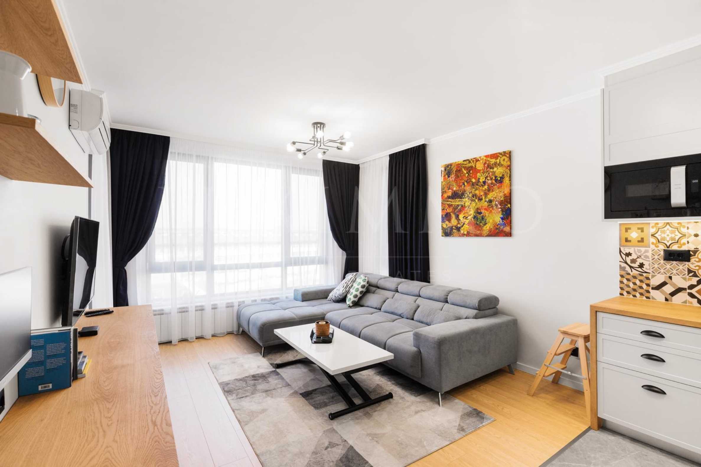 Представяме за продажба луксозно обзаведен двустаен апартамент, изпълнен по индивидуален дизайнерски проект и готов за нанасяне. Жилището впечатлява с висококачествени материали, изчистен стил и внимание към всеки детайл.