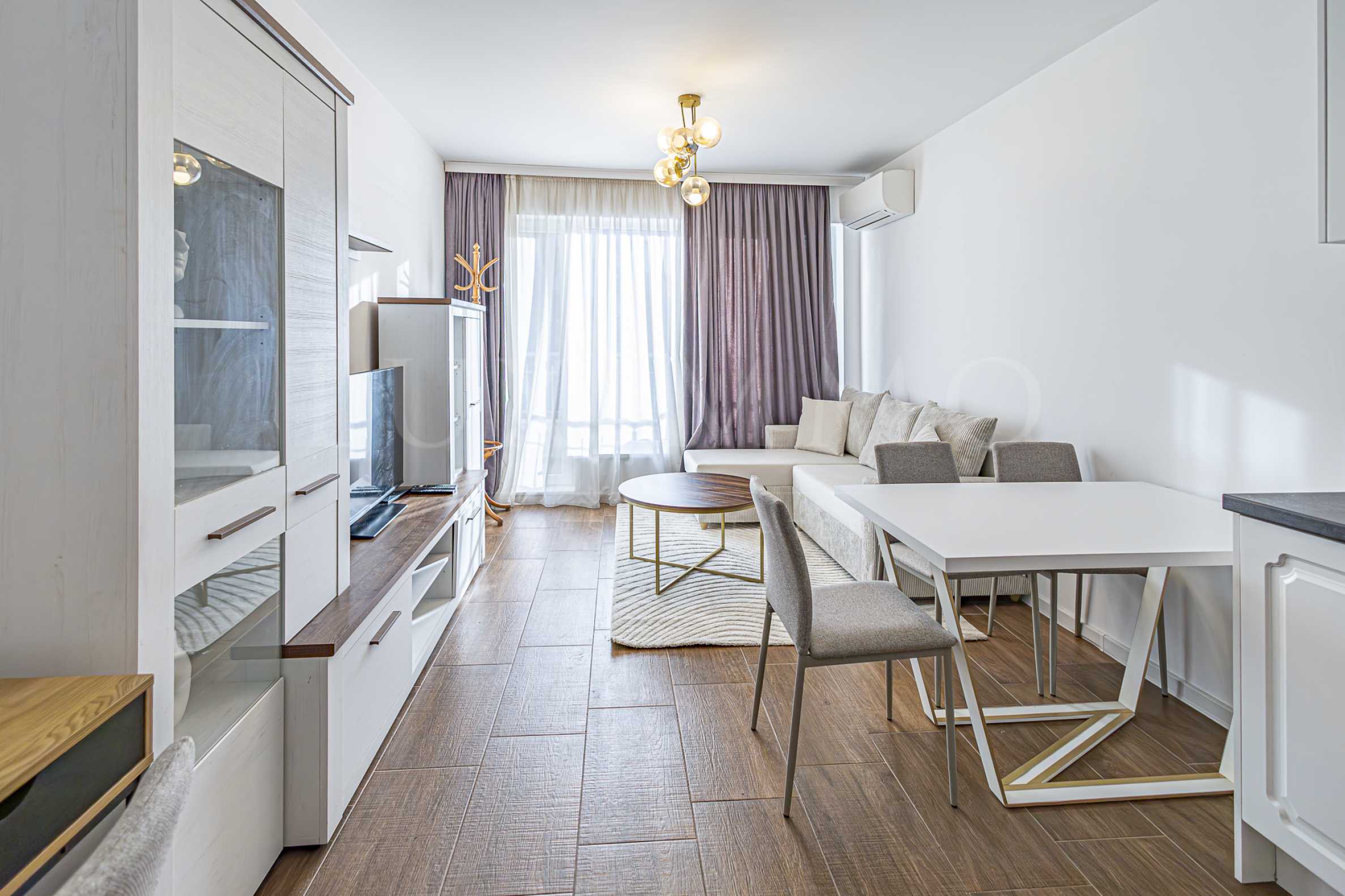 Жилището е уютно и стилно обзаведено, има всичко необходимо за живеене, вкл. пералня със сушилня, съдомиялна и прахосмукачка.