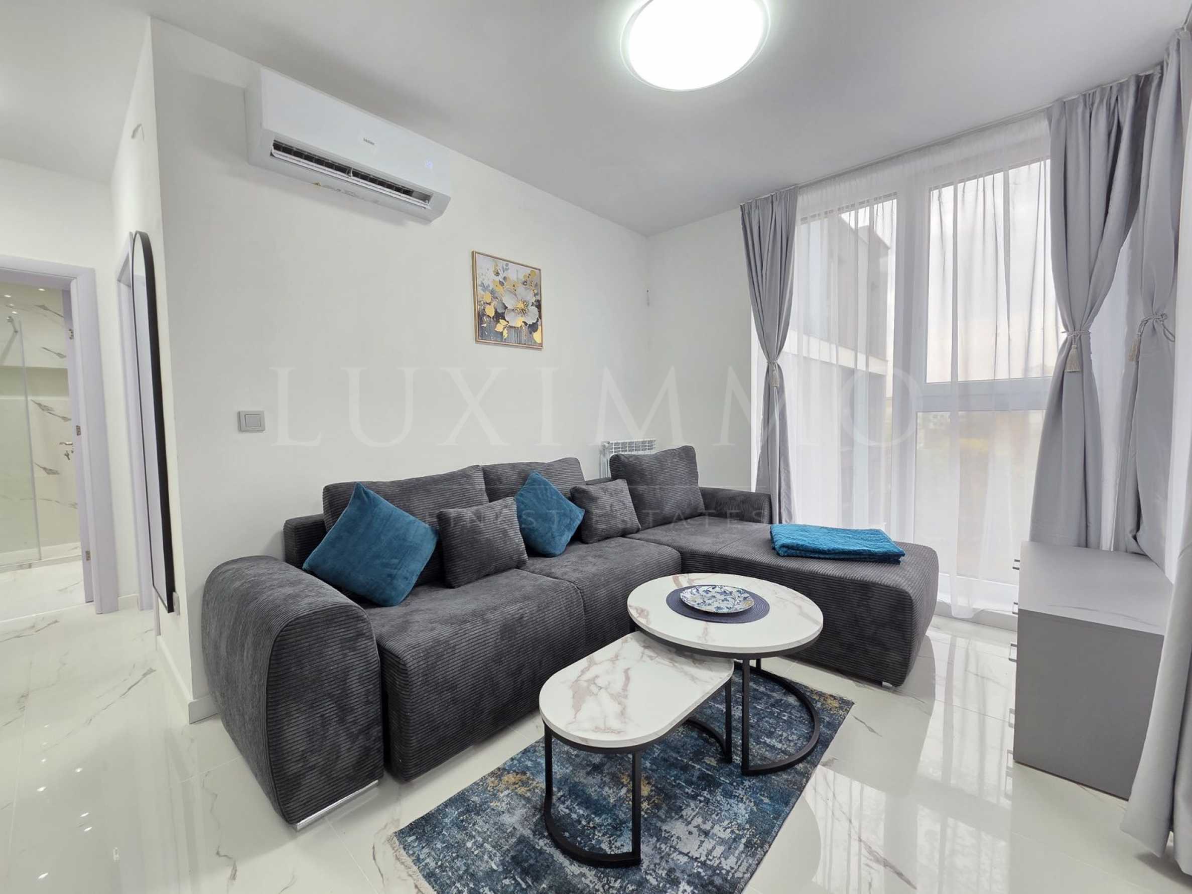 Обзавеждане: Апартаментът се предлага напълно обзаведен с нови мебели, висококачествени материали, включително гранитогрес и енергоспестяващо LED осветление, проточен бойлер, пералня със сушилня, миялна машина. Кухнята е с вградено кухненско оборудване от висок клас.