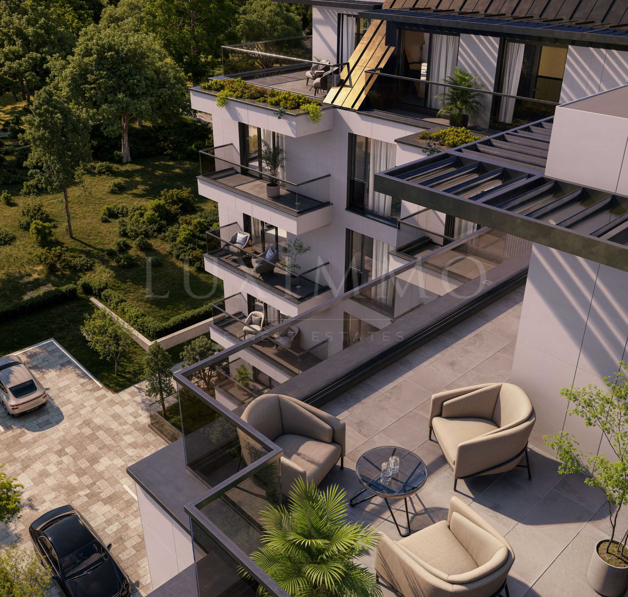 Допълнителна шумоизолация ще осигури тишина и уединение, а амбиентното фасадно и градинско осветление добавя към естетиката на комплекса.