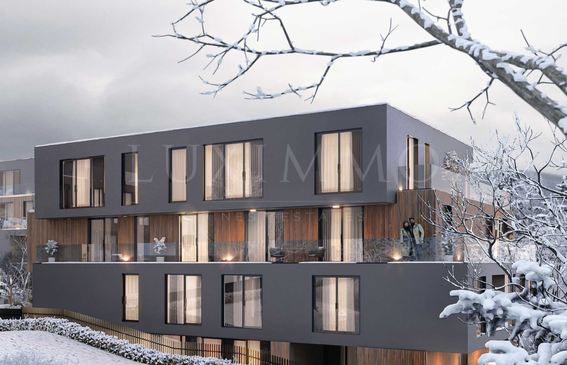 • Стъклени парапети и модерни фасадни елементи, подчертани в унисон с околната среда;