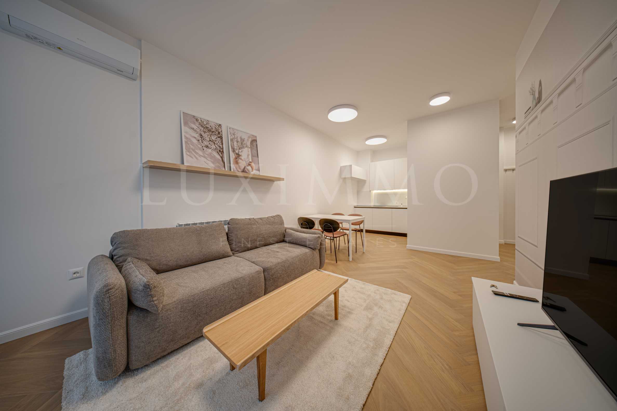 Жилището е с южно изложение, което осигурява светлина и комфорт през целия ден, и разполага със собствен двор с площ от 17 кв.м. Апартаментът е изпълнен с внимание към детайла и предлага висок клас електроуреди Bosch, естествен паркет, високи тавани и дизайнерски мебели, интериор с модерна и уютна атмосфера.