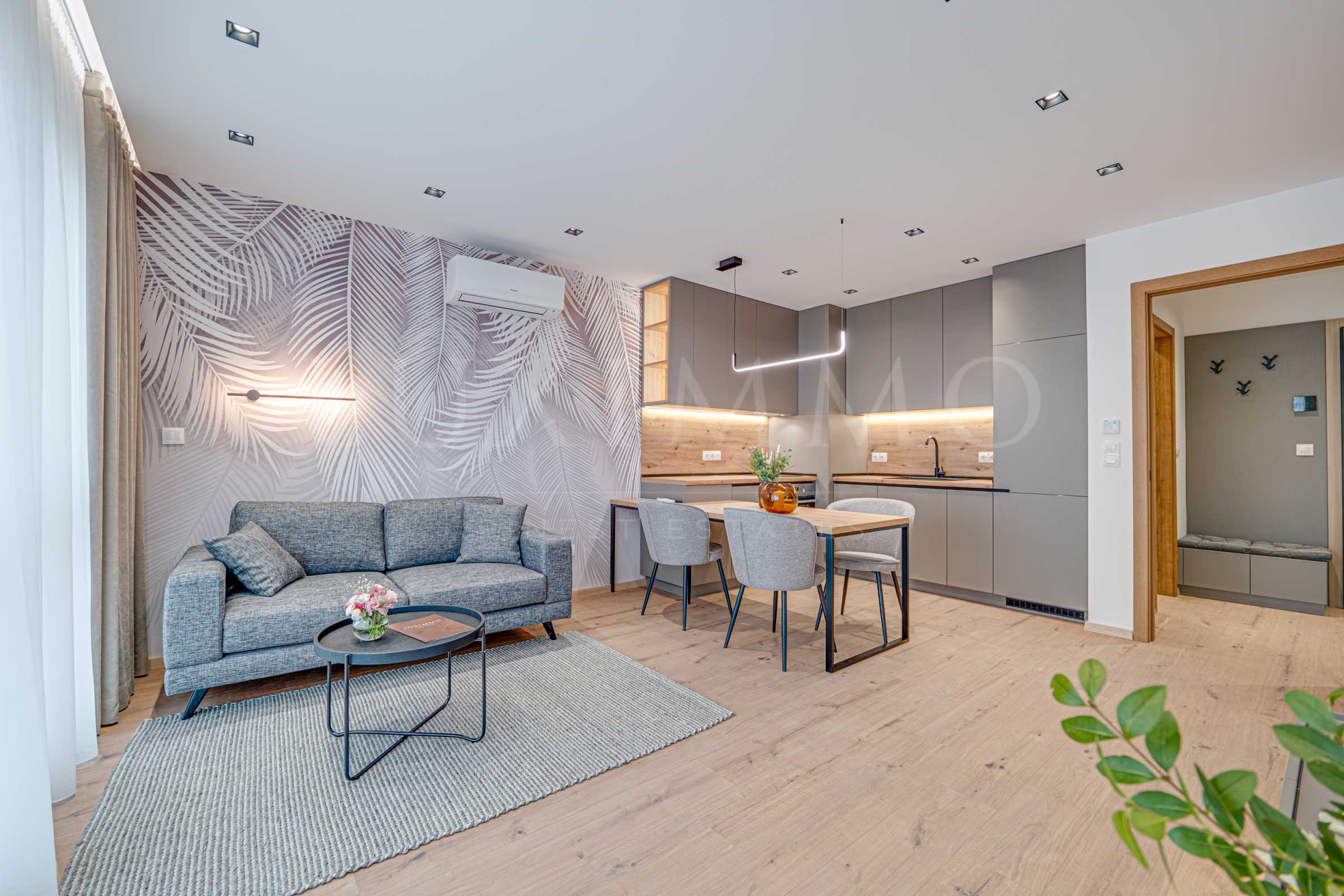 Представяме чисто нов, първокласно завършен двустаен апартамент в комплекс „Зеленият квартал“, изпълнен по дизайнерски проект и обзаведен с висококачествени мебели и оборудване.