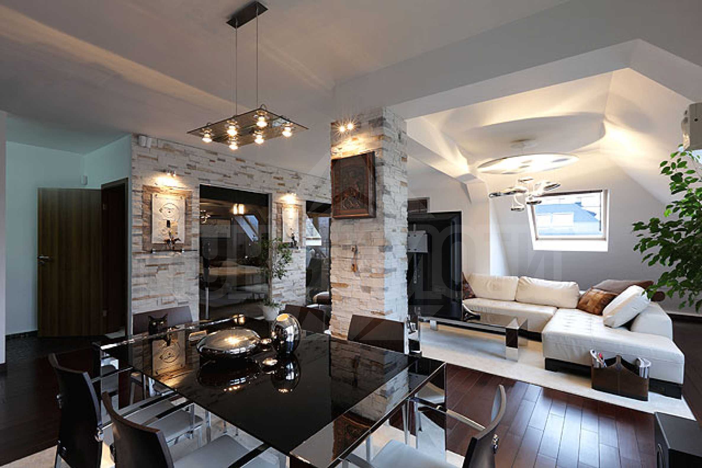 Едно олицетворение на иновативните интериорни решения и уюта на класическите материали, като дърво и камък. На площ от 116 кв.м. на пети жилищен етаж с изложение юг- запад е разположено жилище, притежаващо изискания дизайн на индивидуалиста. Този стойностен имот се намира в елитния квартал „Манастирски ливади”, ул. „Тодор Джебаров”. Сградата е завършена през 2008г. и има Разрешение за ползване.