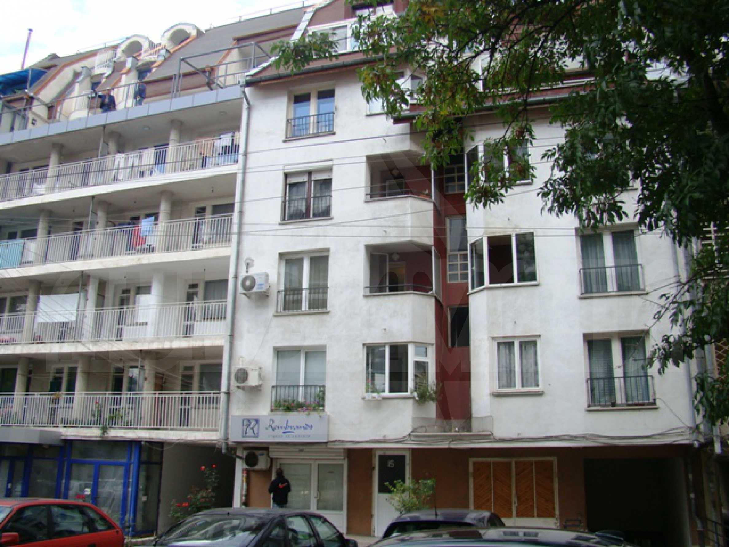 Апартаментът е разположен на трети етаж над магазини. Изложението е изток/запад. Жилището се предлага завършено, но има нужда от освежаване: