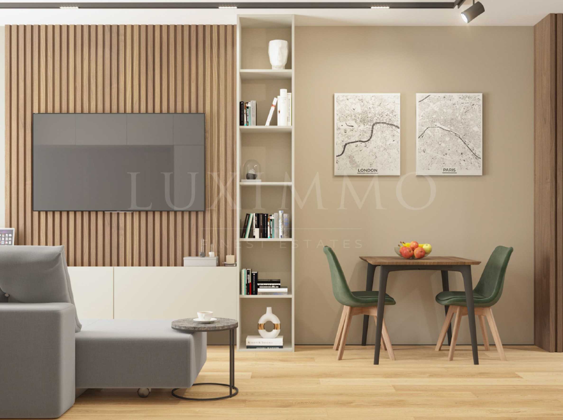 Представяме за продажба апартамент от тип двойно студио, разположен в сграда, която е първият инвестиционен проект в България, който предлага обзаведени апартаменти с гарантиран месечен наем. Собствениците получават 5% годишна доходност за първите 2 години. В този период те не се ангажират с управление и стопанисване на имота, хигиената, заетостта и осигуряването на приятна атмосфера на наемателите.
