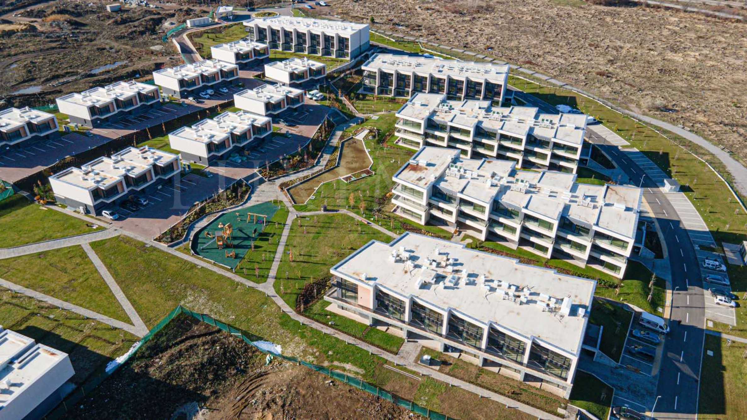 Разположен върху терен с площ 91 дка, комплексът е изграден с концепция за съжителство с природата и здравословен начин на живот. Комуникира с природата чрез комбинация от естествени материали като камък, дърво и стъкло, а за отопление и охлаждане ще се използват чисти енергоносители и системи - природен газ, климатична техника от най-ново поколение. Решенията са енергоефективни - висок клас топло- и хидроизолации, системи за събиране на дъждовни и дренажни води, и ползването им за поливни и битови нужди. Територията на комплекса е с контролиран достъп, видеонаблюдение и 24/7 охрана, ще разполага с алея на здравето с дължина 2 500 м за ходене, крос и фитнес на открито, и минифутбол и волейбол.
