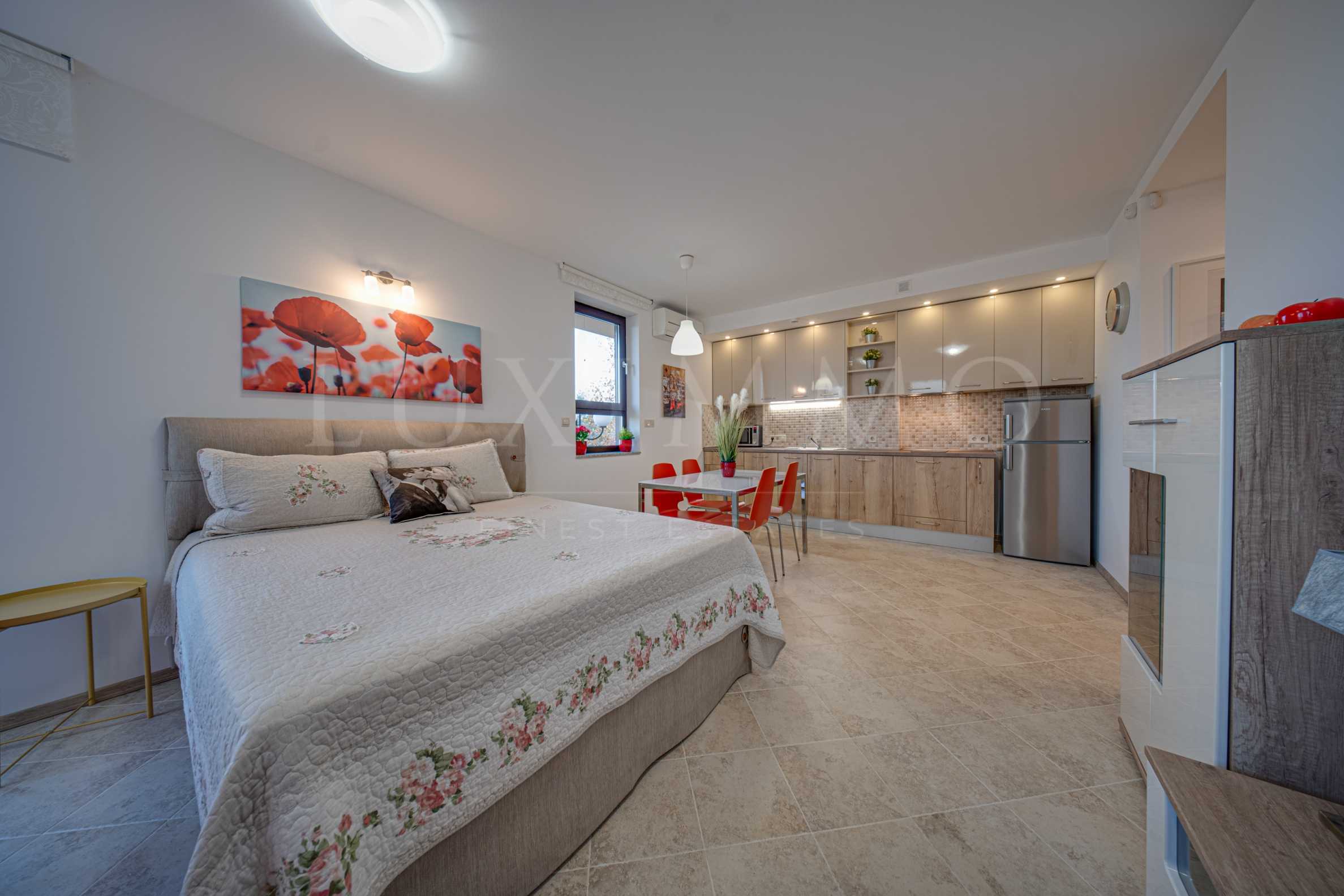 Предлагаме под наем уютен едностаен апартамент, разположен в спокоен и поддържан затворен комплекс в кв. Симеоново.