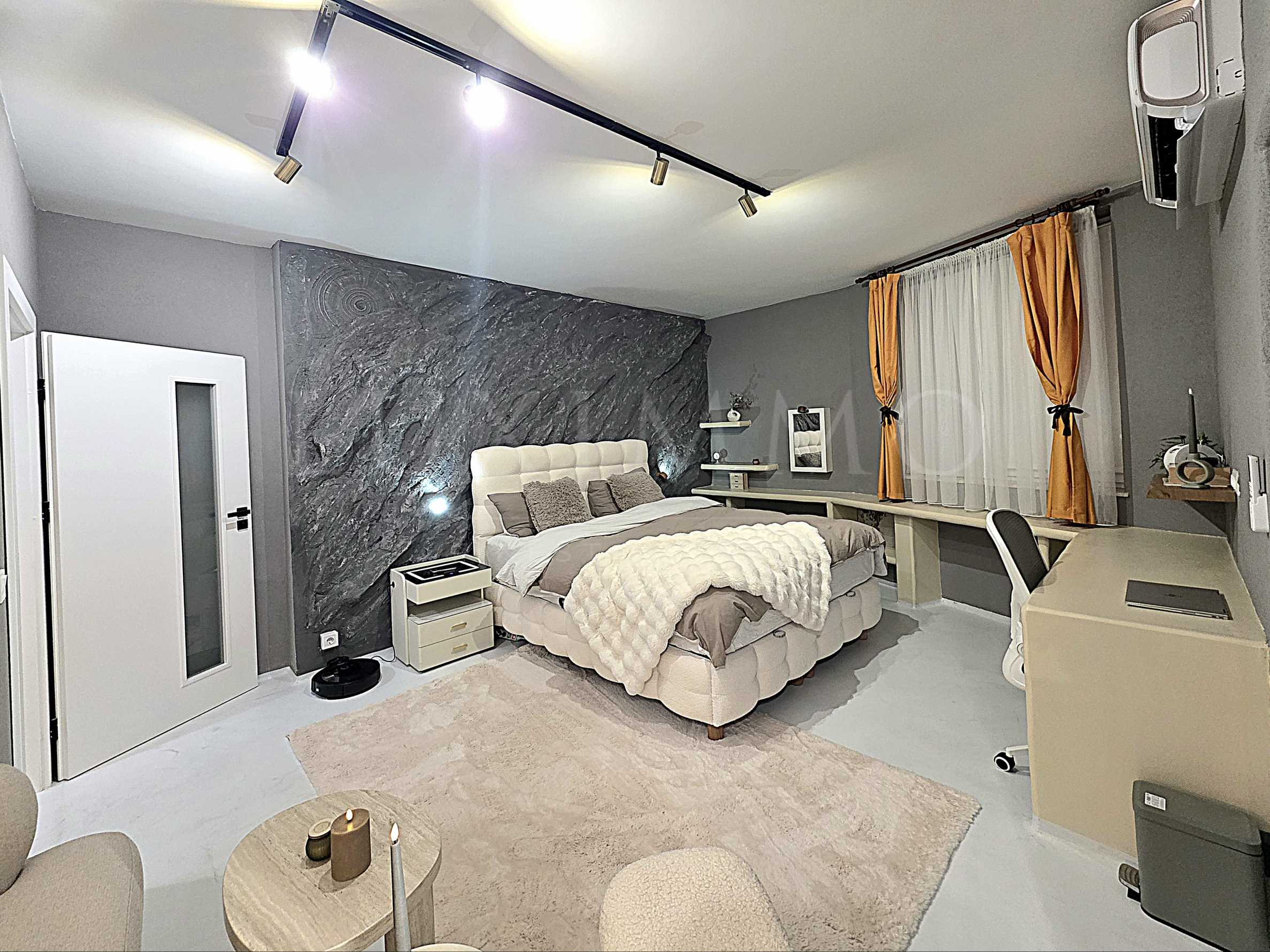 Апартаментът се продава обзавеждането, видно от снимките. Всички мебели са специално поръчани по дизайнерски проект, отличават се с високо качество на материалите и изработката, за да осигурят максимален комфорт на живот на бъдещите собственици. Обърнато е внимание към всеки детайл и жилището е отличен избор за обитаване от сам човек или двойка или като инвестиция с цел отдаване под наем/нощувки.