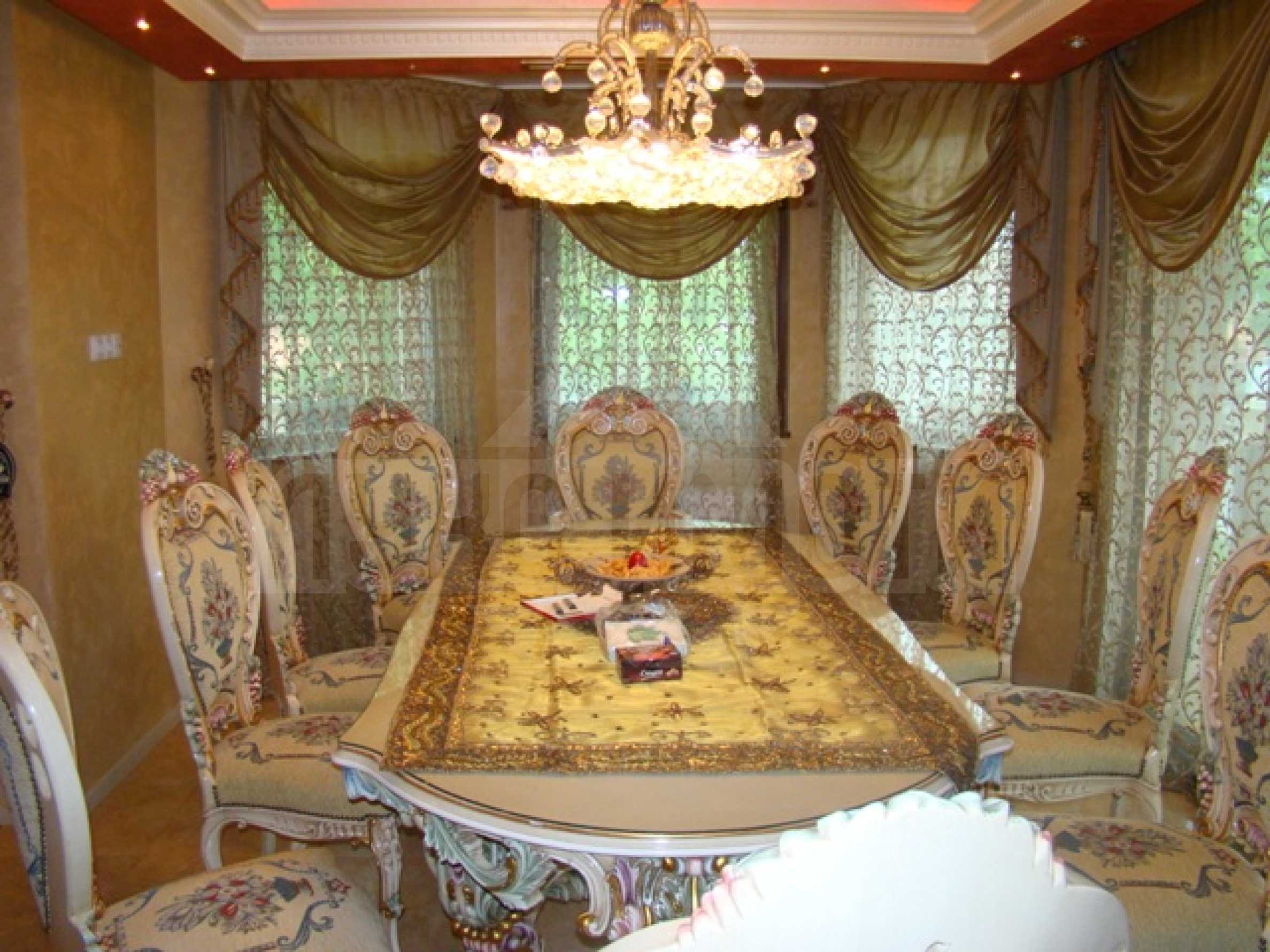 Имотът се състои от три надземни и едно подземно ниво с обща квадратура 800 кв.м. и дворно място- 560 кв.м. Модерна, стилна и просторна, тази къща разполага с всичко необходимо за забързаното ежедневие на съвременния човек, както и допълнителни екстри, които да задоволят и най-високите изисквания за луксозна обстановка и удобство: