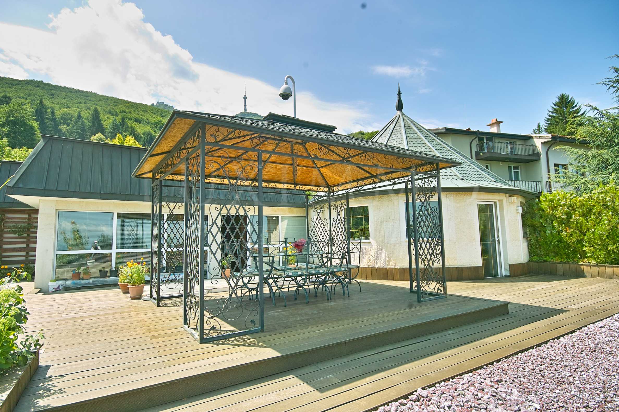 Общата площ на къщата по документи е 1343 кв.м, като в тази площ не е включена панорамна тераса на последния етаж с изключителна 360-градусова гледка към цялата столица и планината Витоша.