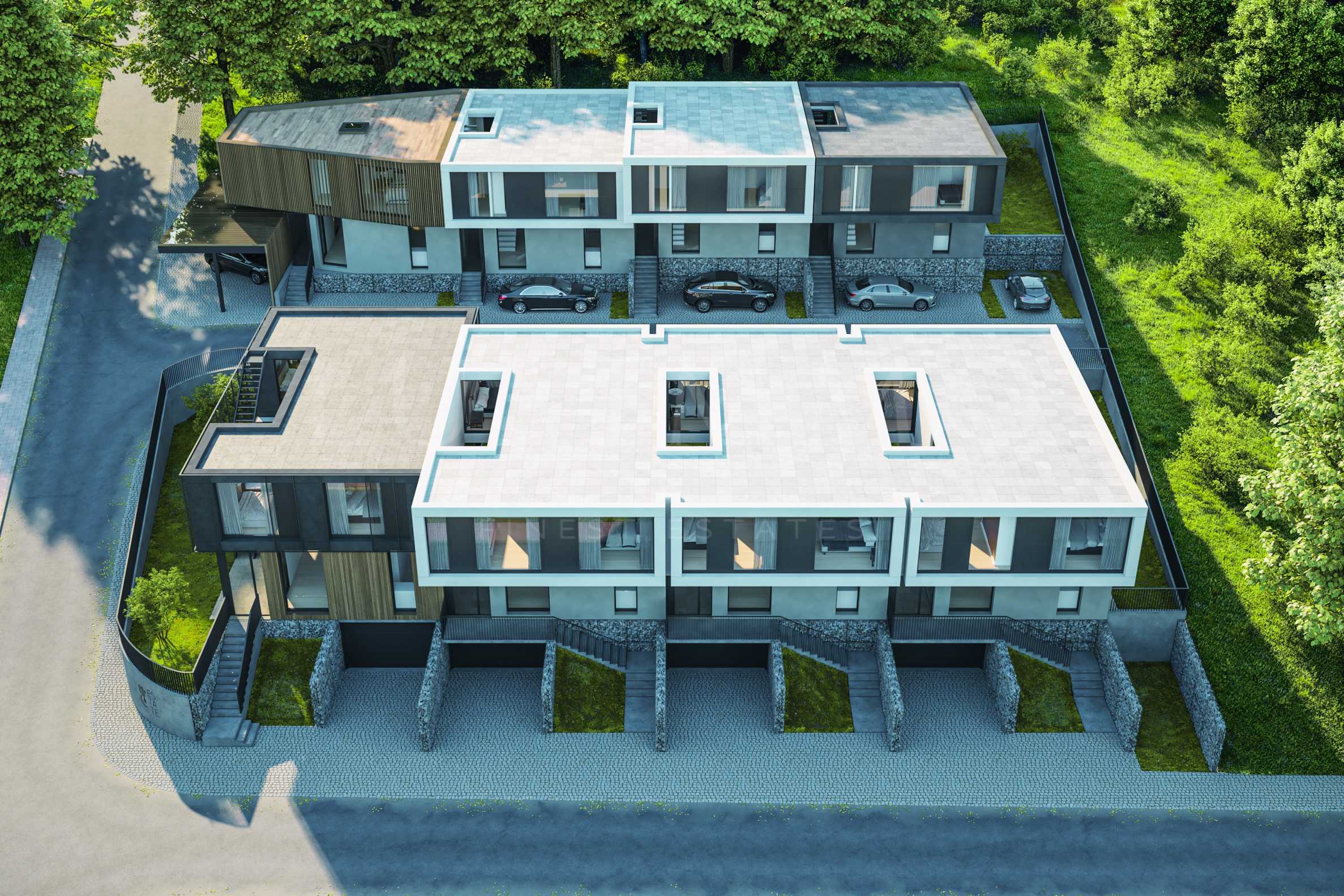 Комплексът се състои от 8 редови къщи, които успешно съчетават характеристиките на градската къща и хармоничния начин на живот сред природа и спокойствие. Имотите са проектирани максимално функционално, осигурявайки простор, а френските прозорци допринасят за изобилие от естествена светлина и разкриват прекрасни гледки към града и Витоша.