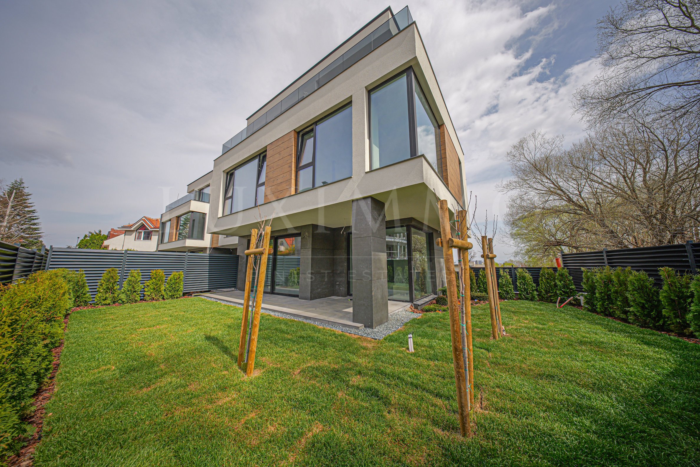 Имотът се предлага в степен на завършеност по БДС, на шпакловка и замазка, и тераси с декинг. В строителството са вложени висококачествени материали и техники - вентилируема фасада с HPL, керамика и мазилка, подова инсталация с разводка за конвектори и алуминиева дограма Reynaers. Дворовете ще бъдат напълно завършени с озеленяване, напояване и осветление.