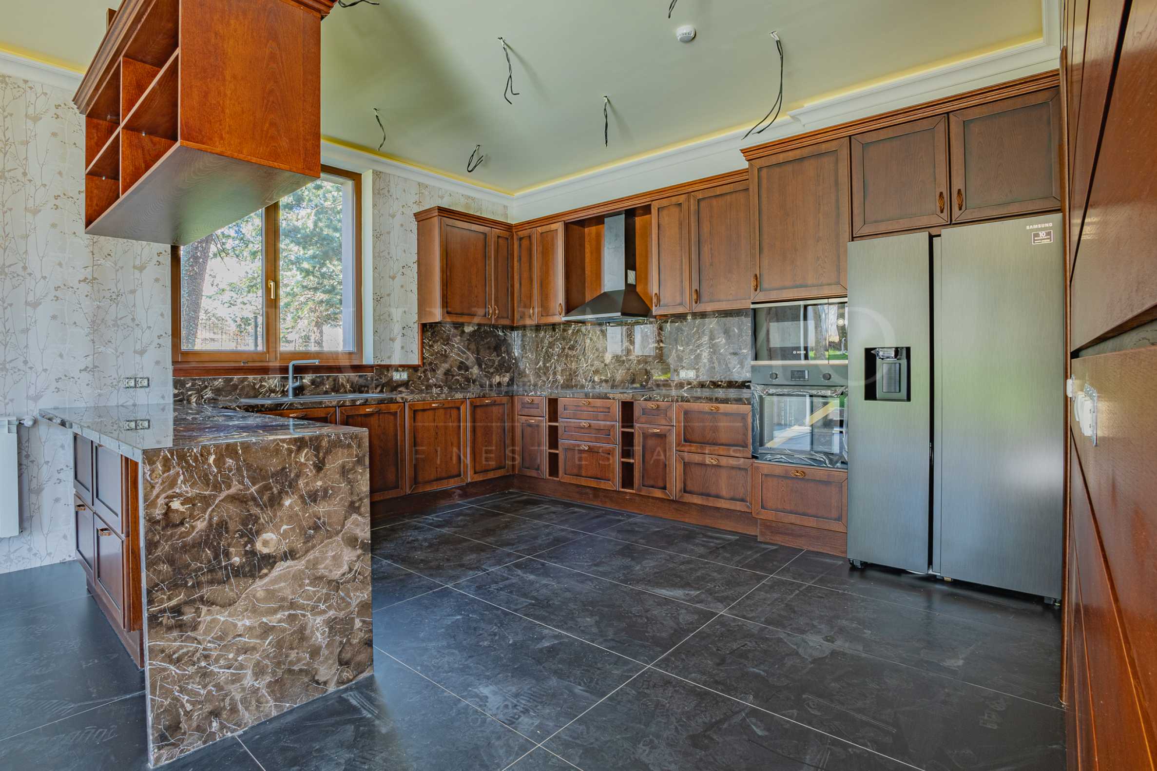 Всички вътрешни врати, настилки, ламперии, стълбища и кухни са изработени от масивно дъбово дърво. Дограмата в цялата къща е дървена, шест камерна "Jеlovica”.