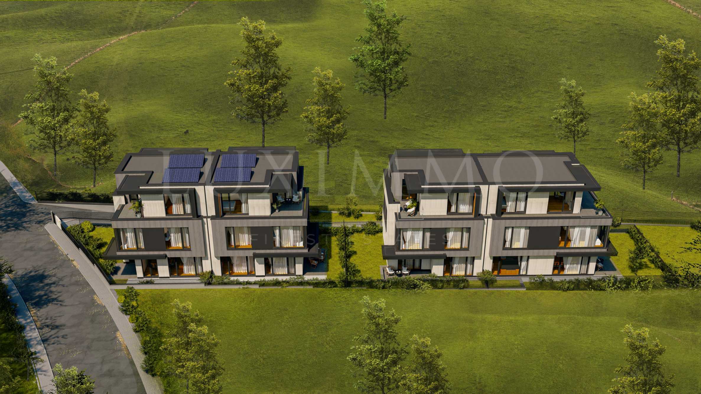 Към всяка къща има индивидуален двор, а отделно от него за общо ползване на живущите е предвидена и голяма озеленена градина, където децата ще могат да тичат и играят, а родителите могат да организират събирания със съседи и приятели.