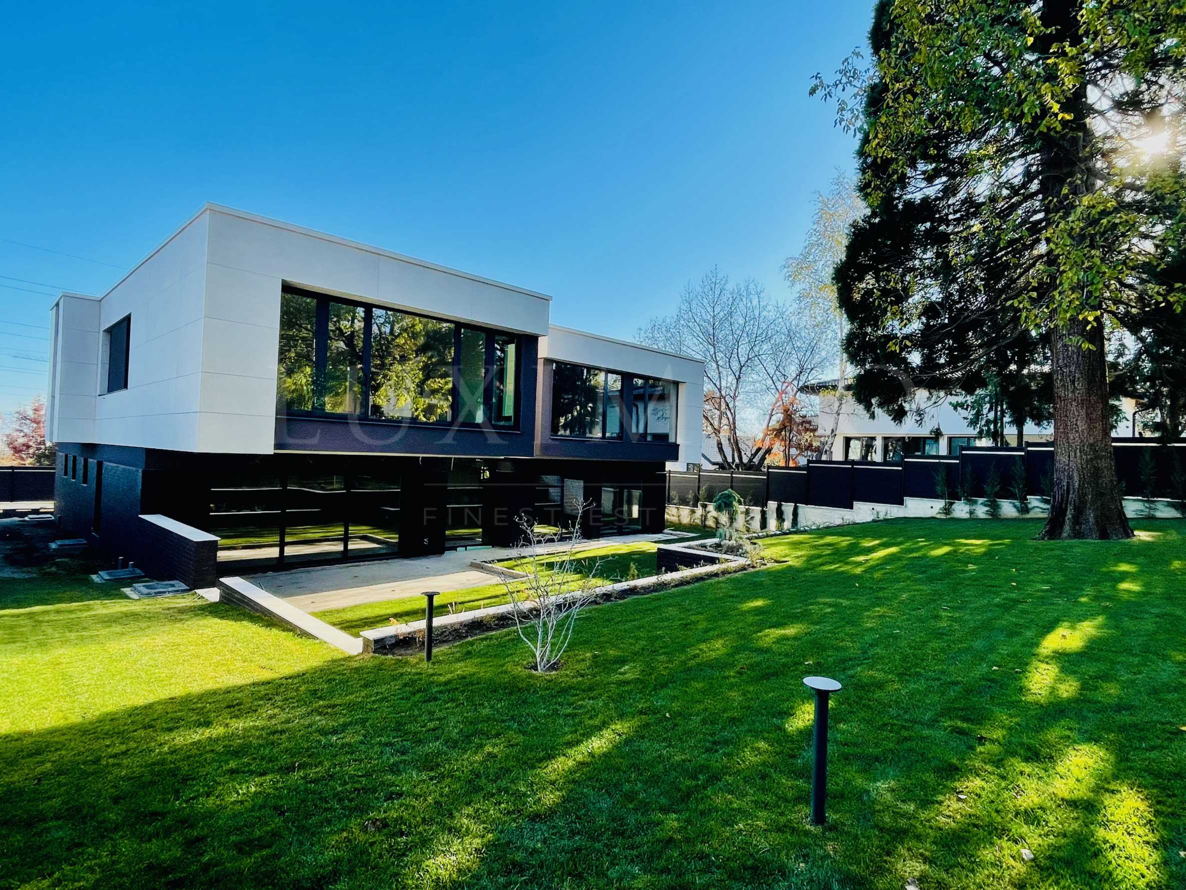 • 2-етажна къща с разгъната застроена площ 564 кв.м, със стилна и модерна фасада, архитектурният дизайн акцентира върху изчистени линии;