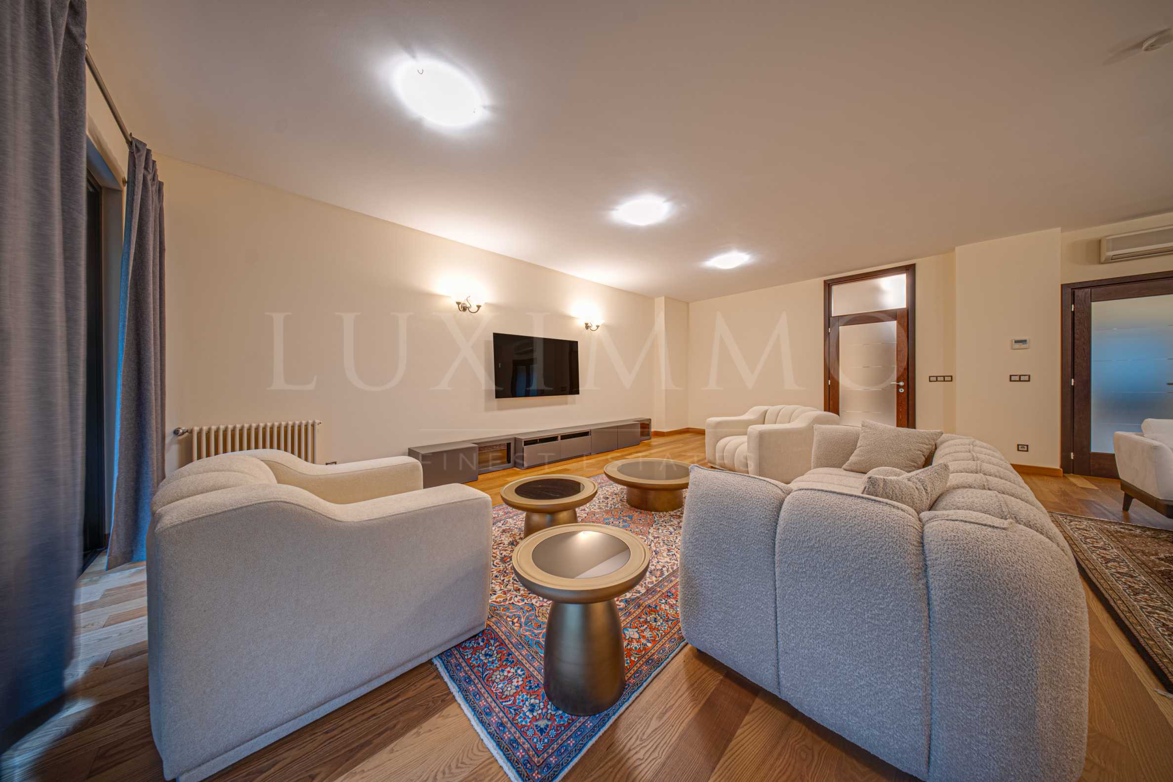 Къщата впечатлява с модерна архитектура, просторни помещения, изобилие от естествена светлина и великолепни гледки към планината Витоша. Предлага интериор, изпълнен с висококачествени италиански мебели и луксозни довършителни решения.