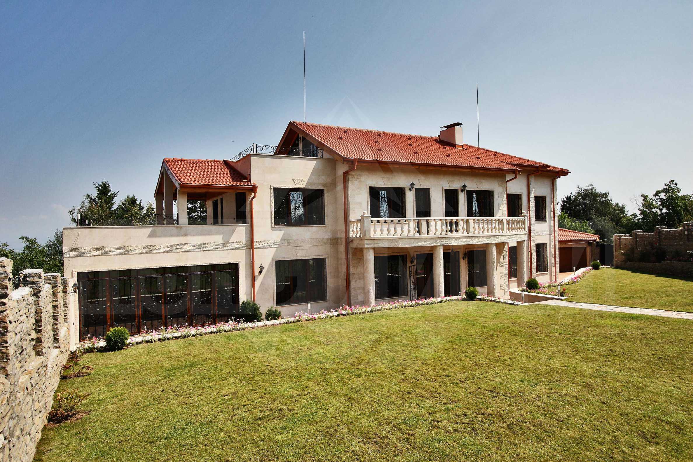 Годината на строеж е 2009 година. Строителните детайли са на изключително високо ниво. Покривът е марка „Брамак”, а облицовката е каменна от травертин. Изградена е система за видео наблюдение. Има няколко алтернативи за отопление - поставено е газово котле, котле на ток и камина „PIAZZETTA” с водна риза, както и изводи за климатици във всяко помещение. Дворът се простира на внушителната площ от 970 кв.м и е красиво озеленен, като са поставени и специални подгряващи плочки марка „Klinker”. Има каменна беседка и барбекю, които по неповторим начин оживяват цялостната обстановка. Имотът е обграден от масивна каменна ограда. Гаражите са в отделна надземна постройка с врати със системата „FAAC”, като има място за три коли.