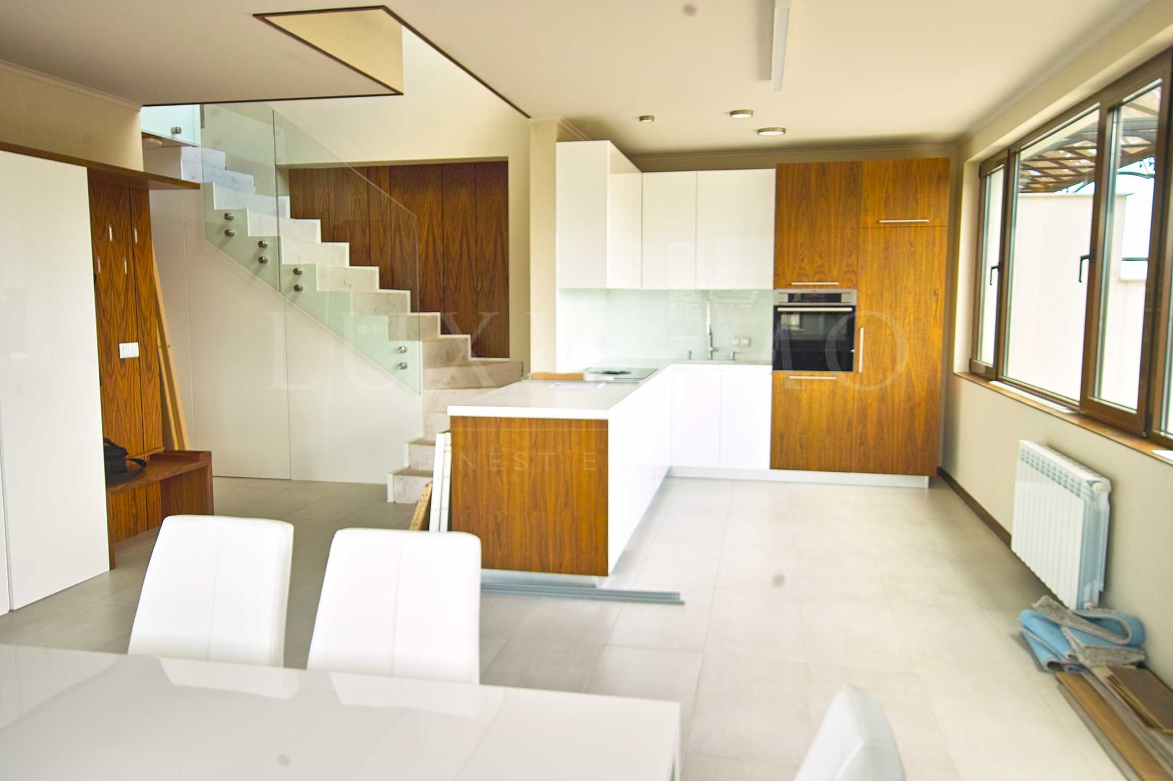 Апартаментът е разположен на осми и девети, последни етажи. Изложението е юг/север/изток, което разкрива невероятна панорамна гледка към София и Витоша планина. Около сградата е застроено по начин, по който гледката няма как да бъде закрита в бъдеще.