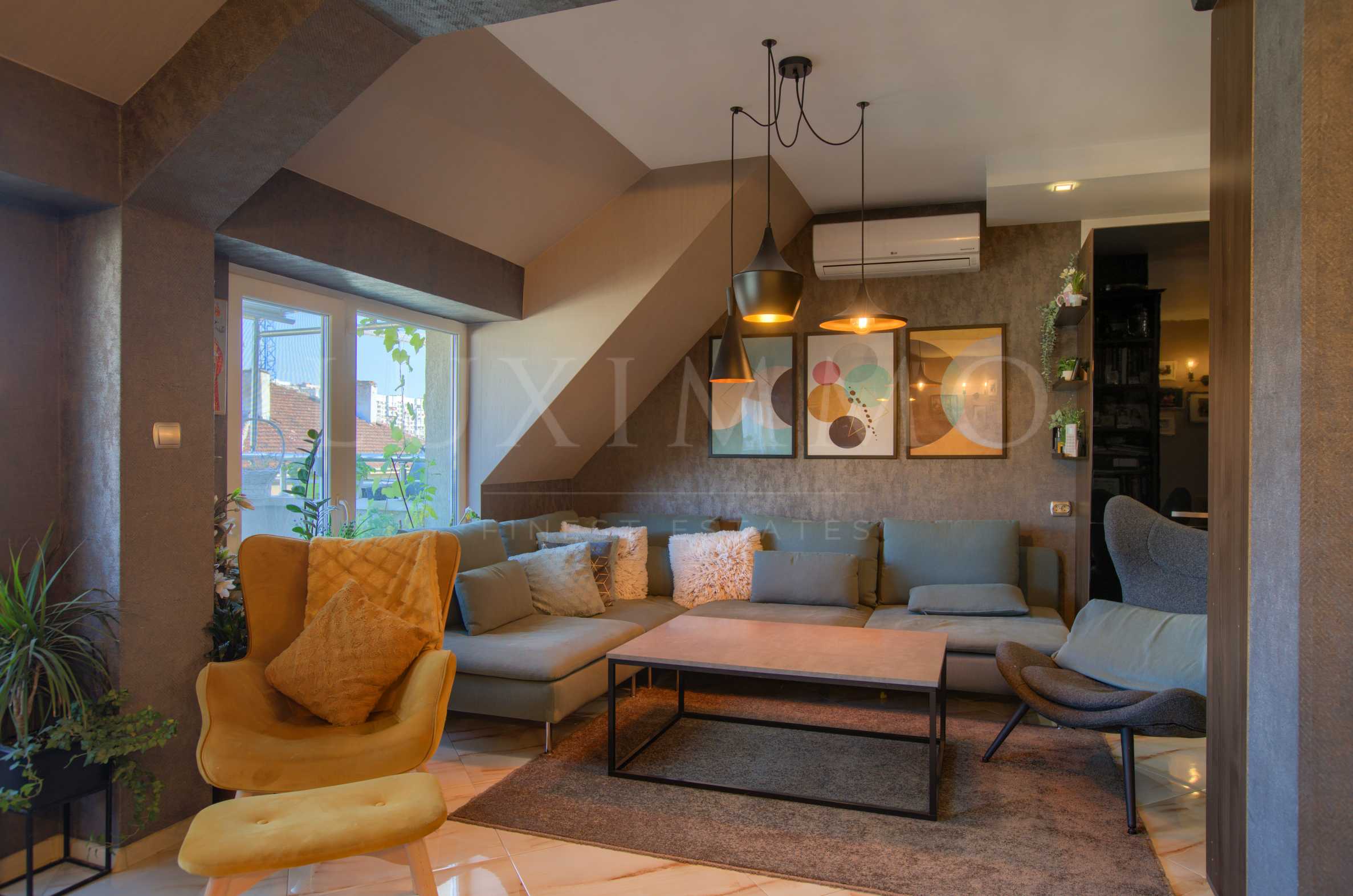 Жилището е разположено на пети и шести етаж в сграда с асансьор и добре подържани общи части.
