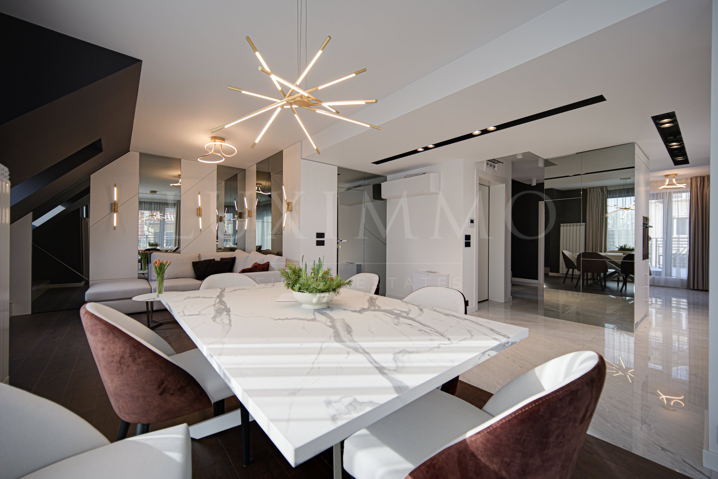 Имаме удоволствието да представим чисто нов, модерен мезонет под наем, част от бутикова сграда с асансьор, който спира директно в имота.