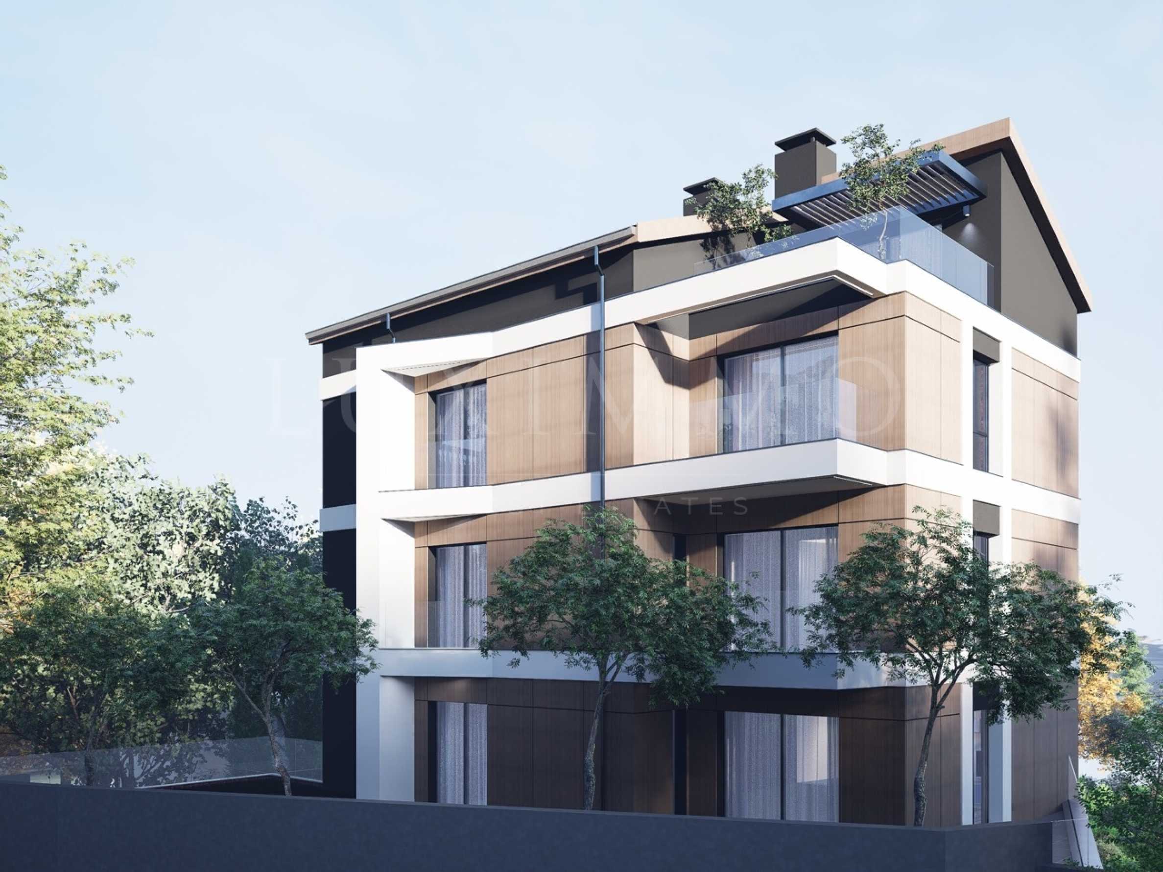 Сградата е малка и представителна, с едва 6 апартамента, разпределени на 4 етажа, което осигурява високо ниво на уединение, тишина и комфортна жилищна среда. Архитектурната визия е модерна и елегантна, а фасадата е изпълнена с естествен камък, който придава характер и устойчивост на проекта.
