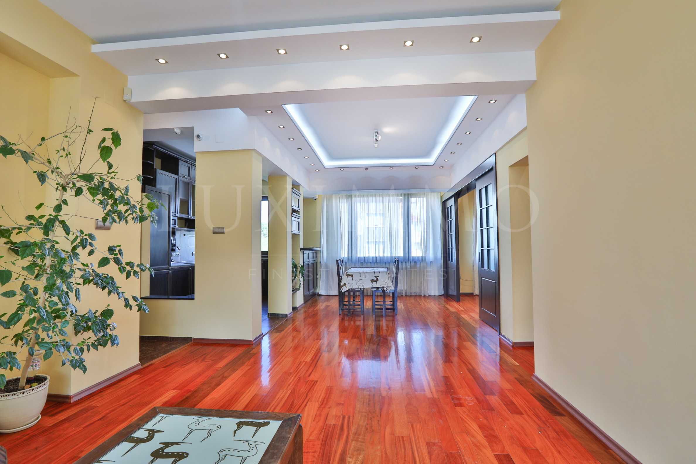 Жилището е изцяло реновирано с висококачествени материали и частично обзаведено. Високите тавани допринасят за чувство на простор, а естественият паркет и дървената дограма със стъклопакет и гранитни первази създават усещане за мекота, уют и стил.