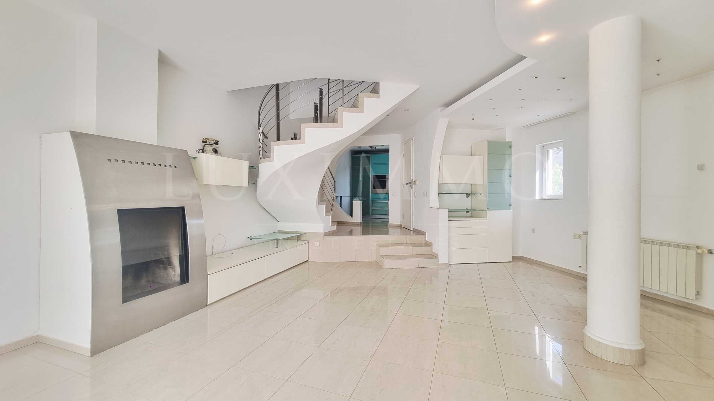 Жилището е разположено на три пълноценни етажа с южно и източно изложение, което му придава изключителна светлина и усещане за простор. Всяко от нивата е с площ около 70 кв.м и е проектирано с внимание към потока на светлина и удобството на съвременния живот. Интериорът е стилен, с качествени мебели, които създават уют и финес без излишна претенция.