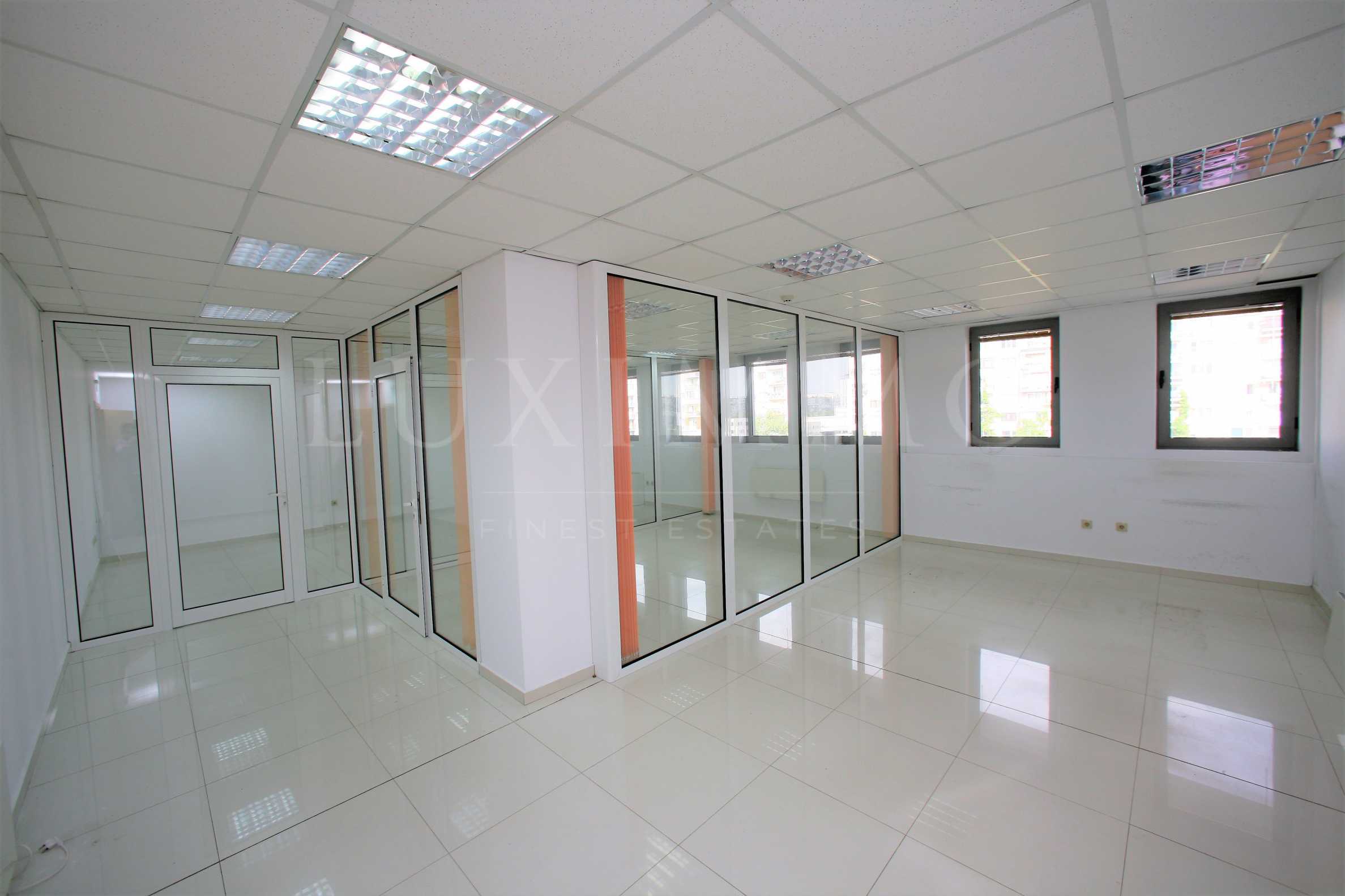 С площ от 122 кв.м., офисът е находящ на 3-ти етаж от 8, в модерен бизнес и търговски център. Отличава се с изключително просторни помещения, завършени с подово покритие от теракот и стени, боядисани с латекс. Работните помещения са разпределени функционално като освен тях офисът разполага със санитарен възел и тераса. Сградата се характеризира с модерна и представителна визия, както и отлично поддържани общи части. Има възможност за наемане на паркоместа.